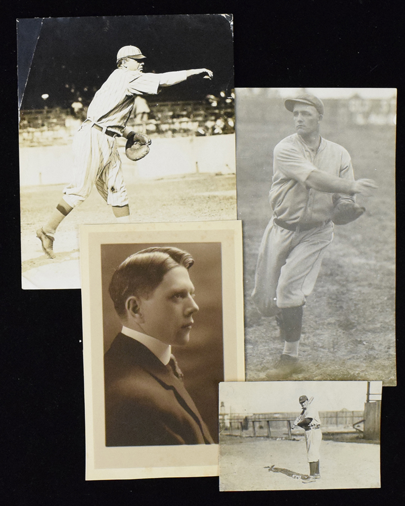 Description:Lot of (4) vintage Pittsburgh Pirates photographs, c.1907-18 (GD-EX/MT). Includes 4"x6" c.1907 Tommy Sheehan photo (VG), 6"x9.5" c.1910s Wilbur Cooper studio portrait marked "Eastland" (EX), 8"x10" c.1912 George Gibson photo (GD-G/VG tape repair at top left corner), and 7"x11" c.1918 Elmer Jacobs photo (EX-EX/MT).