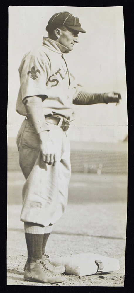 Description:Bobby Wallace oversize photograph, c.1913 (VG). Approx. 7"x17.5" photo picturing Wallace in St. Louis Browns uniform, "JUN 16, 1913" date stamp is on the back. There is a fold crease across the photo, causing small tears at both edges: VG