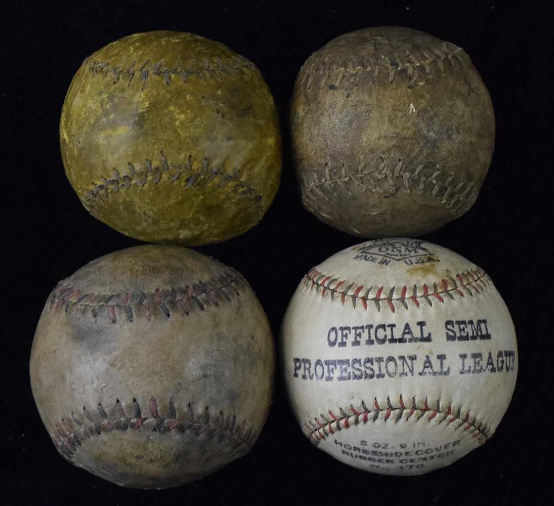 Description:Lot of (5) vintage baseballs, c.1910s-30s (GD-EX). Includes (3) c.1910s bounder style baseballs (GD-VG), c.1920s-30s red/black stitched baseball (VG/EX), and c.1930s D&M Official Semi Professional League baseball (EX).