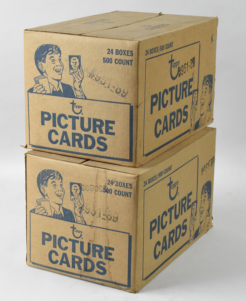 Description:Lot of (2) 1989 Topps Baseball vending cases (NM overall). Both cases contain (24) boxes with 500-cards per box. Cases show fairly minor handling/storage wear, and it is presumed that the cards inside remain in high grade condition: NM overall