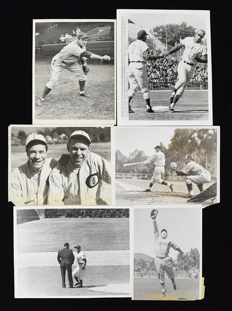 Description:Lot of (19) vintage Chicago Cubs photographs, c.1929-1970 (GD-EX/MT). Mix of individual and multi-player images. Players include Leo Durocher, Billy Williams, Augie Galan, Stan Hack, Babe Herman, Joe E. Brown, Ripper Collins, Dick Bartell, Roy Cullenbine, Johnny Goryl, Bill Lee, Harvey Hendrick, Glen Russell, Roy Henshaw, Beryle Richmond, Lynn Nelson, Carroll Yerkes, Clyde Beck, Zack Taylor, Gus Suhr, and Henry Meyer. Most appear to average VG overall with normal age/handling wear. Range: GD-EX/MT