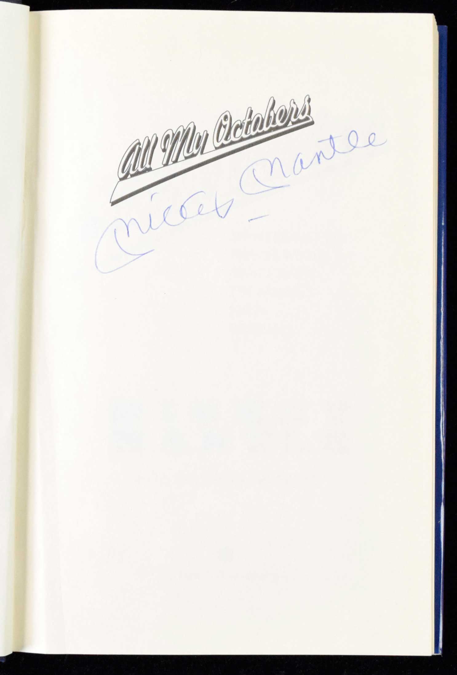 Mickey Mantle autographed book "All My Octobers" (NM) Hardcover book has been signed on the title page in ink rating 8/9 out of 10: NM