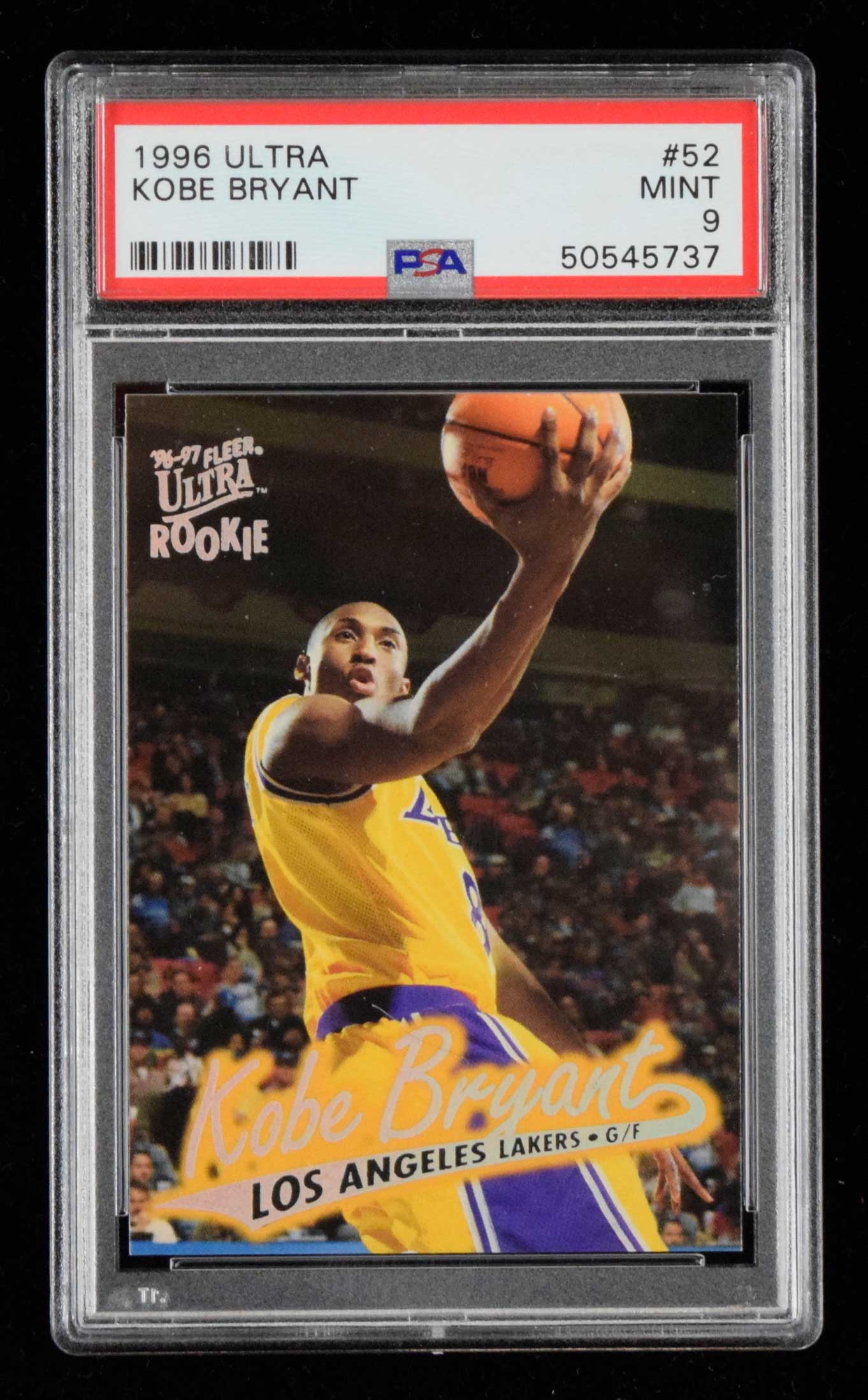 1996 Fleer Ultra #52 Kobe Bryant Rookie (PSA Mint 9) High grade Kobe Rookie with no mentionable wear: PSA Mint 9 ($500-$750)