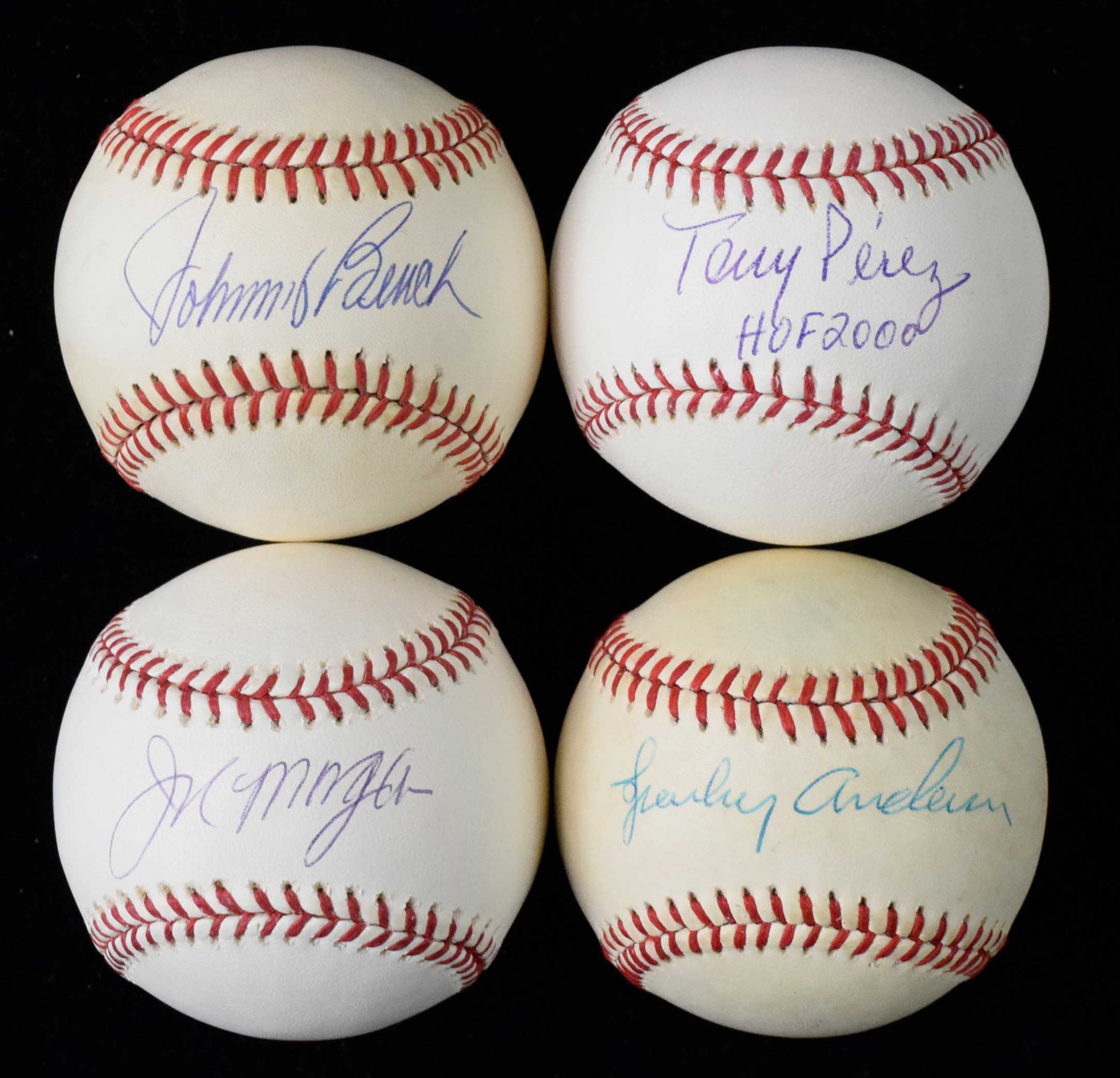 Description:Lot of (5) Big Red Machine era HOFers signed baseballs - JSA & PSA/DNA (EX-NM/MT). Includes B.Brown AL ball (toning) signed by Sparky Anderson (JSA), B.Selig ML ball signed by Joe Morgan (PSA/DNA), W.White NL ball (toning) signed by Johnny Bench (JSA), B.Selig ML ball signed by Tony Perez with "HOF 2000" inscription (PSA/DNA), and B.Selig ML ball signed by Pete Rose with "Hit King" inscription (PSA/DNA). Signatures rate 8 to 9/10 out of 10: EX-NM/MT
