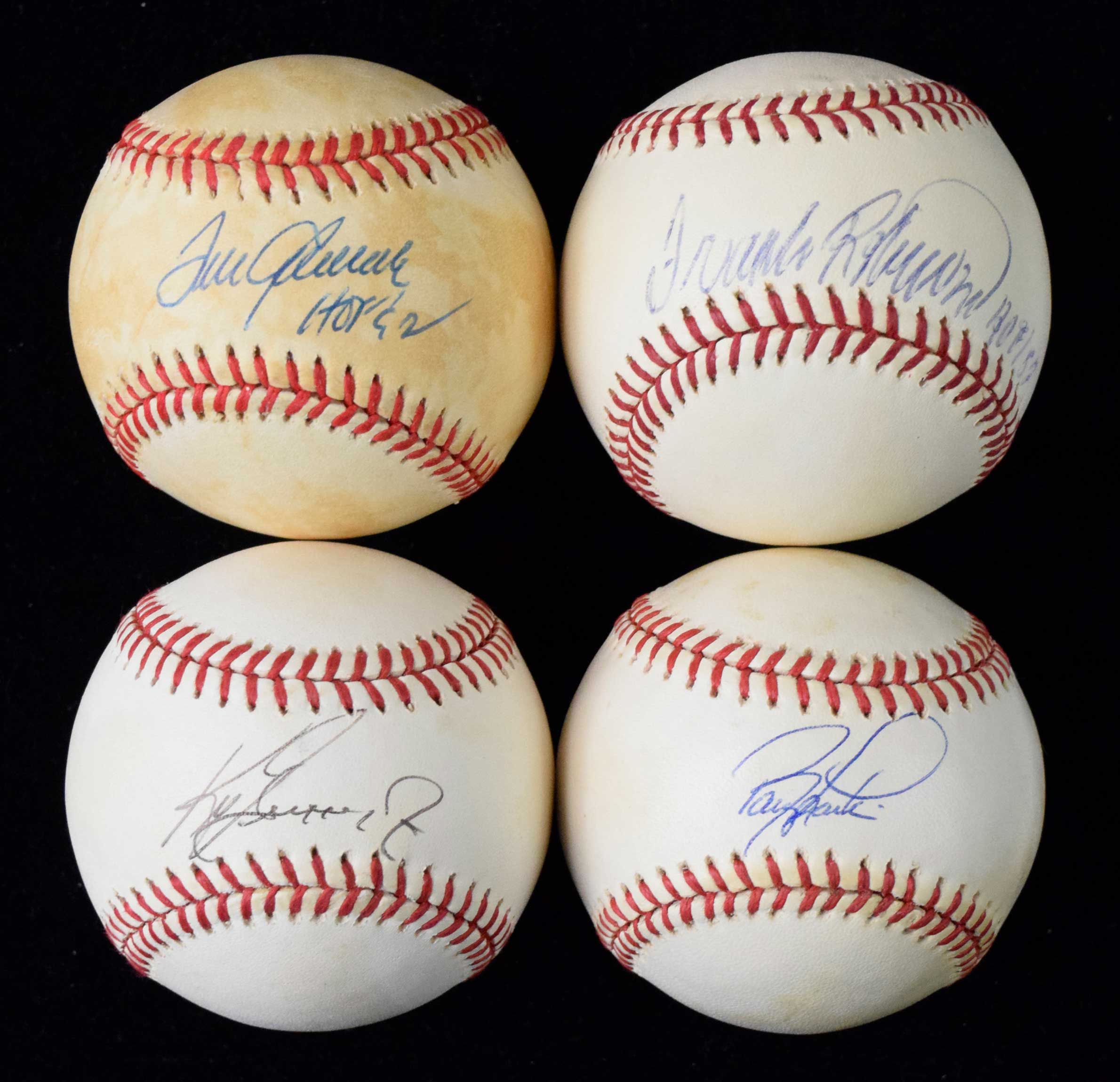 Description:Lot of (5) HOFers signed baseballs (VG-EX/MT). Includes L.Coleman NL ball (toned) signed by Tom Seaver with "HOF 92" inscription (PSA/DNA), L.Coleman NL ball (light toning) signed by Frank Robinson with "HOF 82" inscription (PSA/DNA), Official Atlantic League ball (used) signed by Brooks Robinson (fading), B.Selig ML ball (light toning) signed by Ken Griffey Jr (JSA), and W.White NL ball (toning) signed by Barry Larkin (PSA/DNA). Signatures rate 5/6 (Brooks Robinson) to 9 (avg 7/8) out of 10: VG-EX/MT