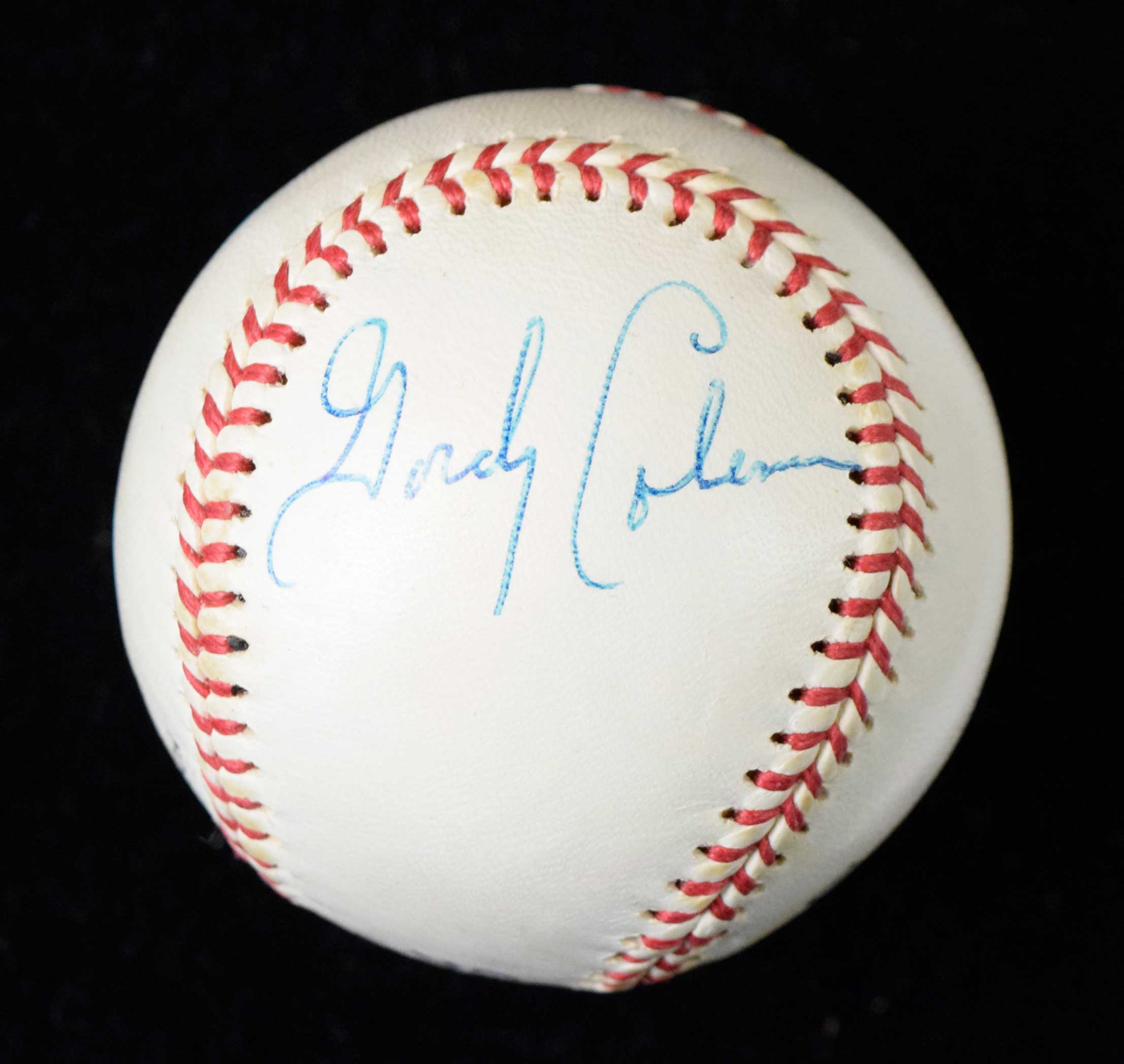 Description:Gordy Coleman signed vintage Wilson baseball (EX/MT). Wilson A1010 Major League Specifications ball signed by Coleman in blue ink. Signature rates 8/9 out of 10. Minor wear around the stampings: EX/MT