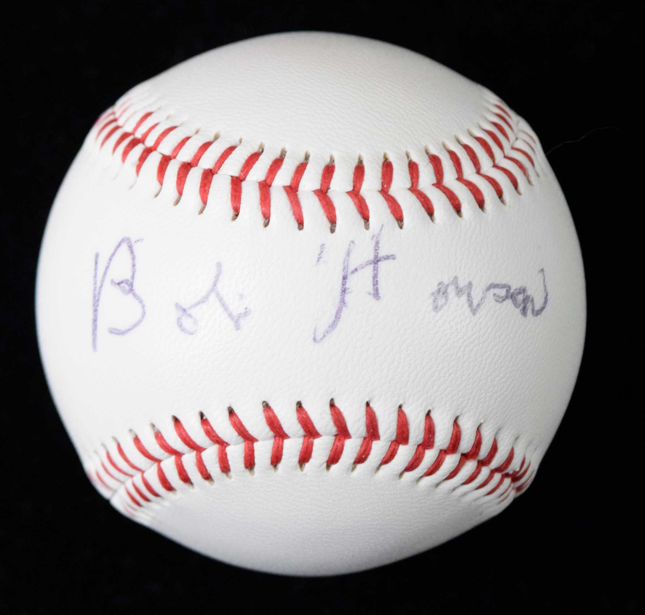 Very rare Bob Howsam signed baseball (NM). Steiner Sports ball signed by Howsam in black ink. Signature rates 7/8 out of 10: NM