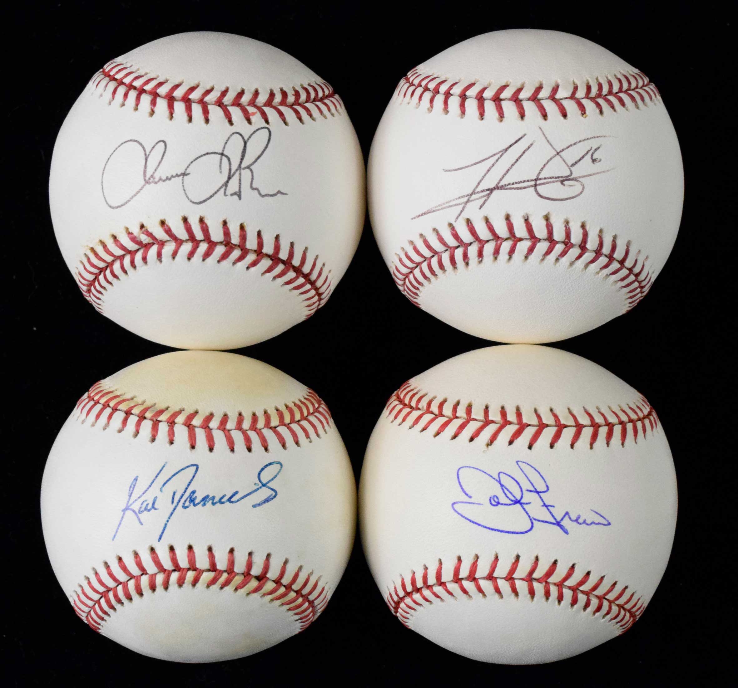 Description:Lot of (10) former Cincinnati Reds signed baseballs (EX-NM/MT). All are signed on official NL, AL, or MLB balls unless noted otherwise. Includes John Franco (PSA/DNA), Kal Daniels (PSA/DNA), Reggie Sanders, Joe Randa (MLB Authenticated), Jonny Gomes (MLB Authenticated), Jason LaRue, Mat Latos, Mike Leake (MLB Authenticated), Raisel Iglesias, and Paul Janish (official league ball). Signatures rate 7/8 to 9/10 (avg 8) out of 10. Most balls appear to average EX/MT overall due to various degrees of toning. Range: EX-NM/MT