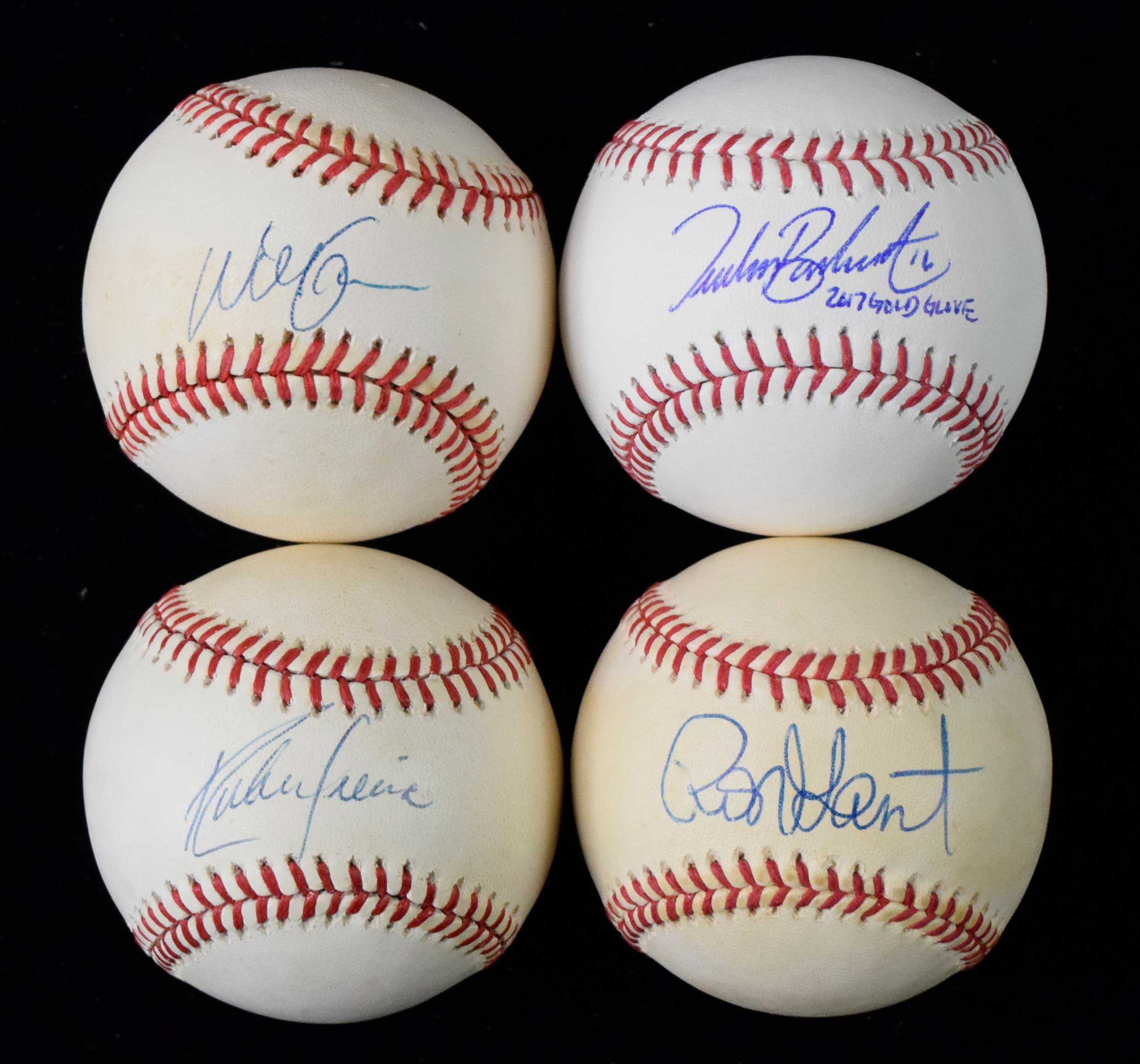 Description:Lot of (10) mostly former Cincinnati Reds signed baseballs (EX-NM/MT). All are signed on official NL, AL, or MLB balls. Includes Rich Aurilia (MLB Authenticated), Roberto Kelly, Ron Gant, Ruben Sierra, Todd Walker, Tony Womack (MLB Authenticated), Ryan Ludwick (MLB Authenticated), Tucker Barnhart, Willie Greene, and Don McCormack (faded). Signatures rate 3/4 (McCormack) to 9/10 (avg 8) out of 10. Most balls appear to average EX/MT overall due to various degrees of toning. Range: EX-NM/MT
