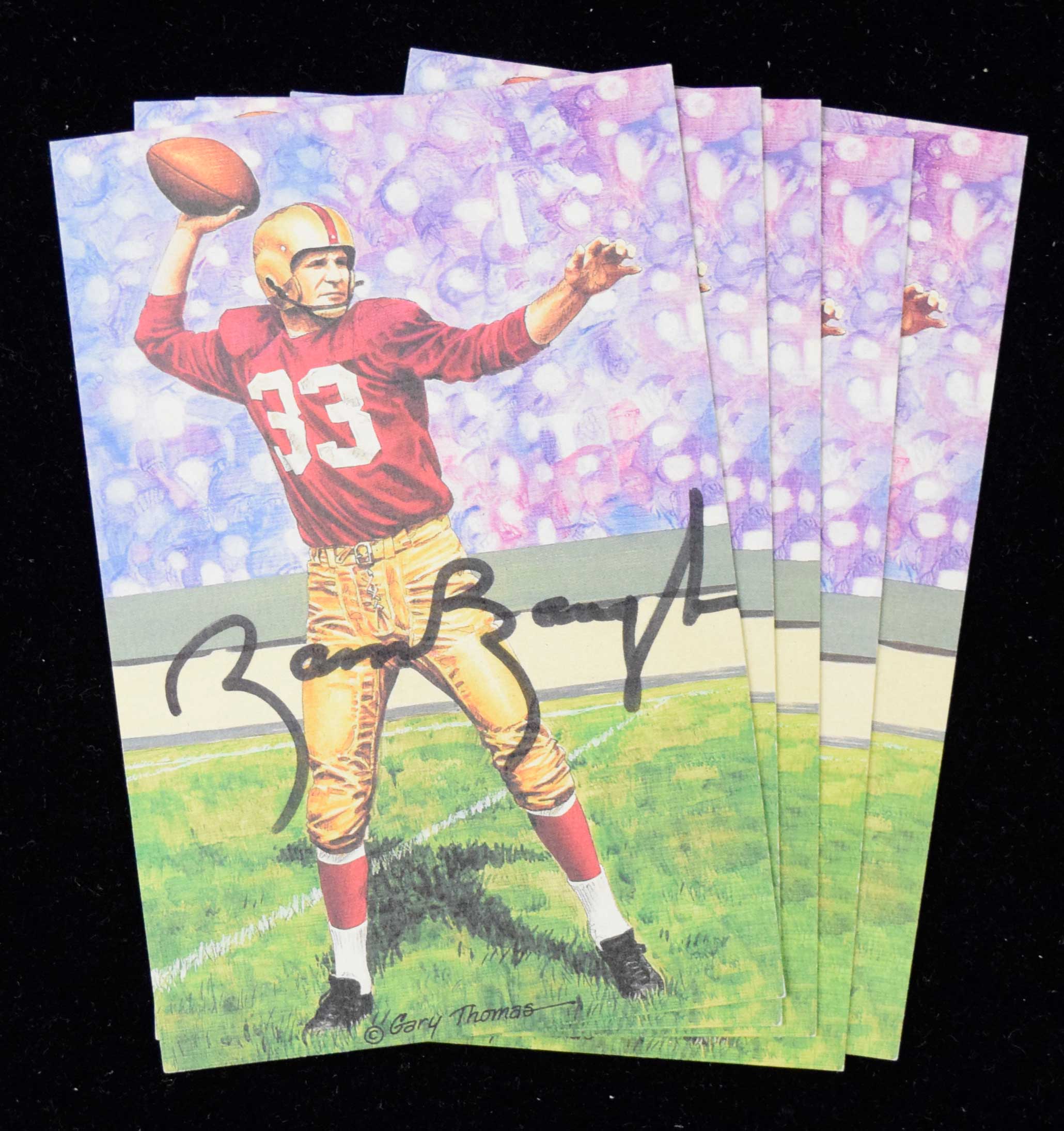 Lot of (5) Sammy Baugh autographed Goal Line Art postcards (NM) Each signed in marker rating 9 to 9/10 out of 10: NM