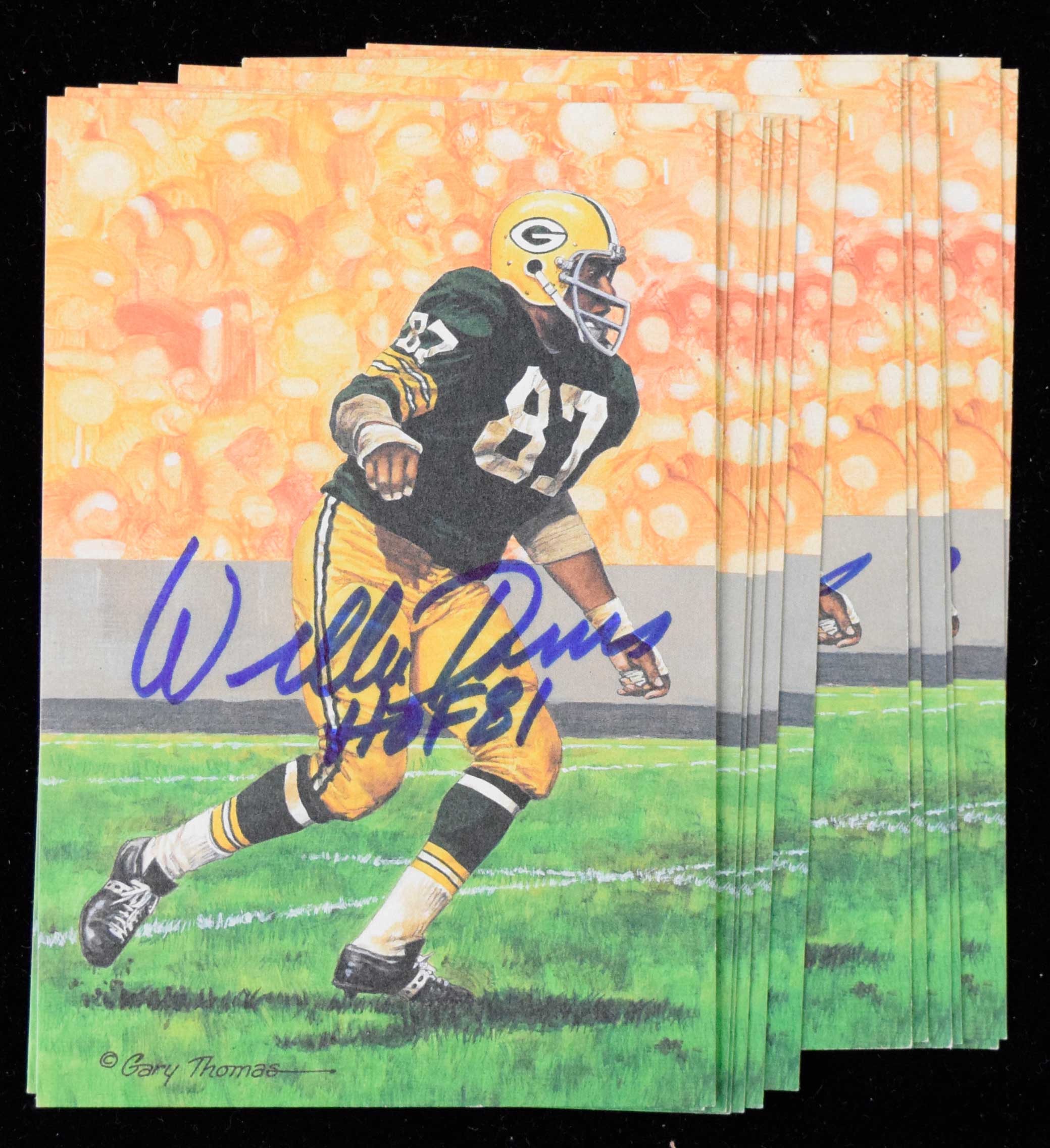 Lot of (13) Willie Davis autographed Goal Line Art postcards (NM) Each signed in marker rating 9 to 9/10 out of 10: NM