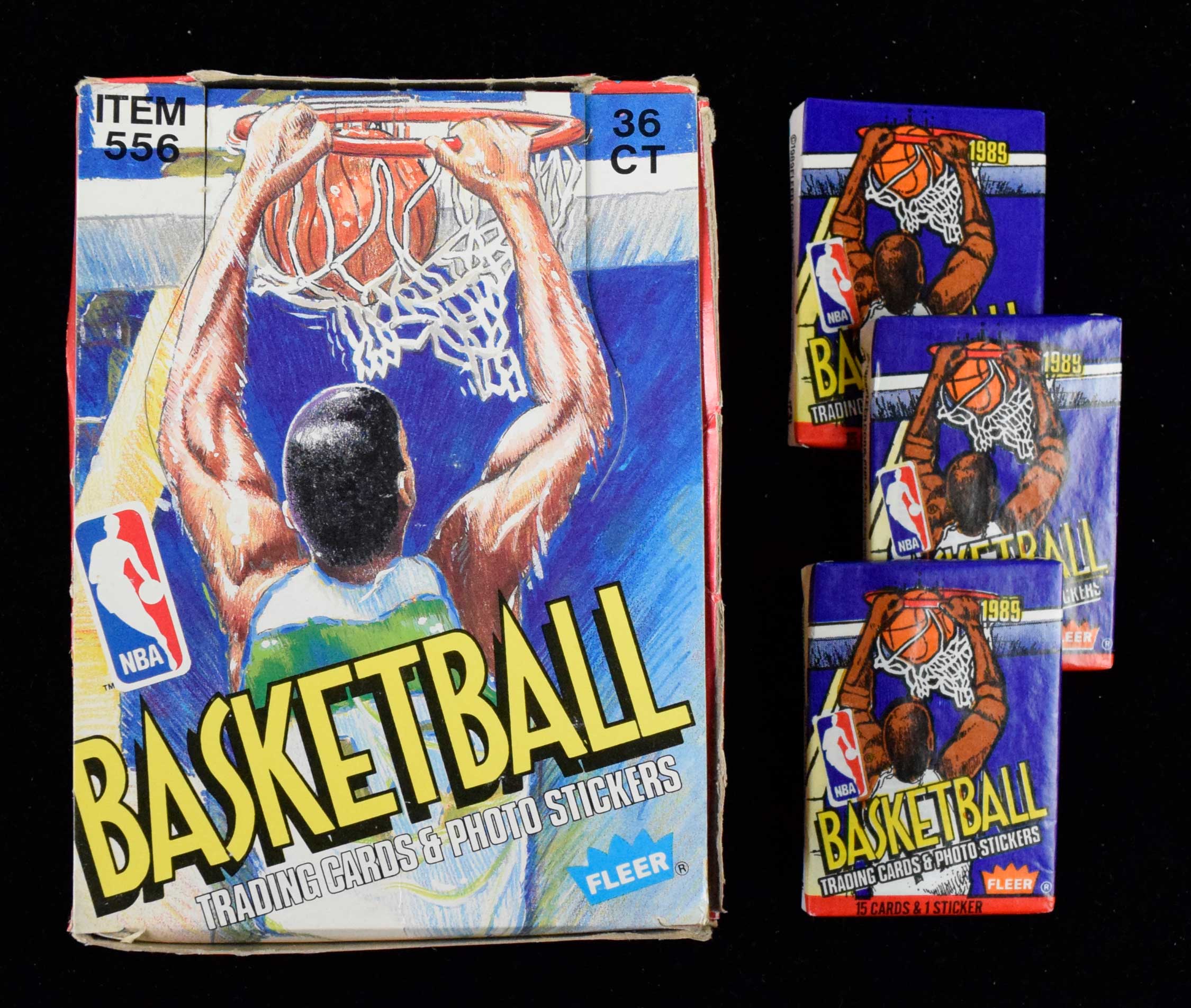 Description:1989-90 Fleer Basketball wax box (EX-NM) Original store display box contains (36) factory sealed packs. Mild storage and handling wear to box, packs are generally EX/MT-NM or better: EX-NM ($1,000-$1,500)