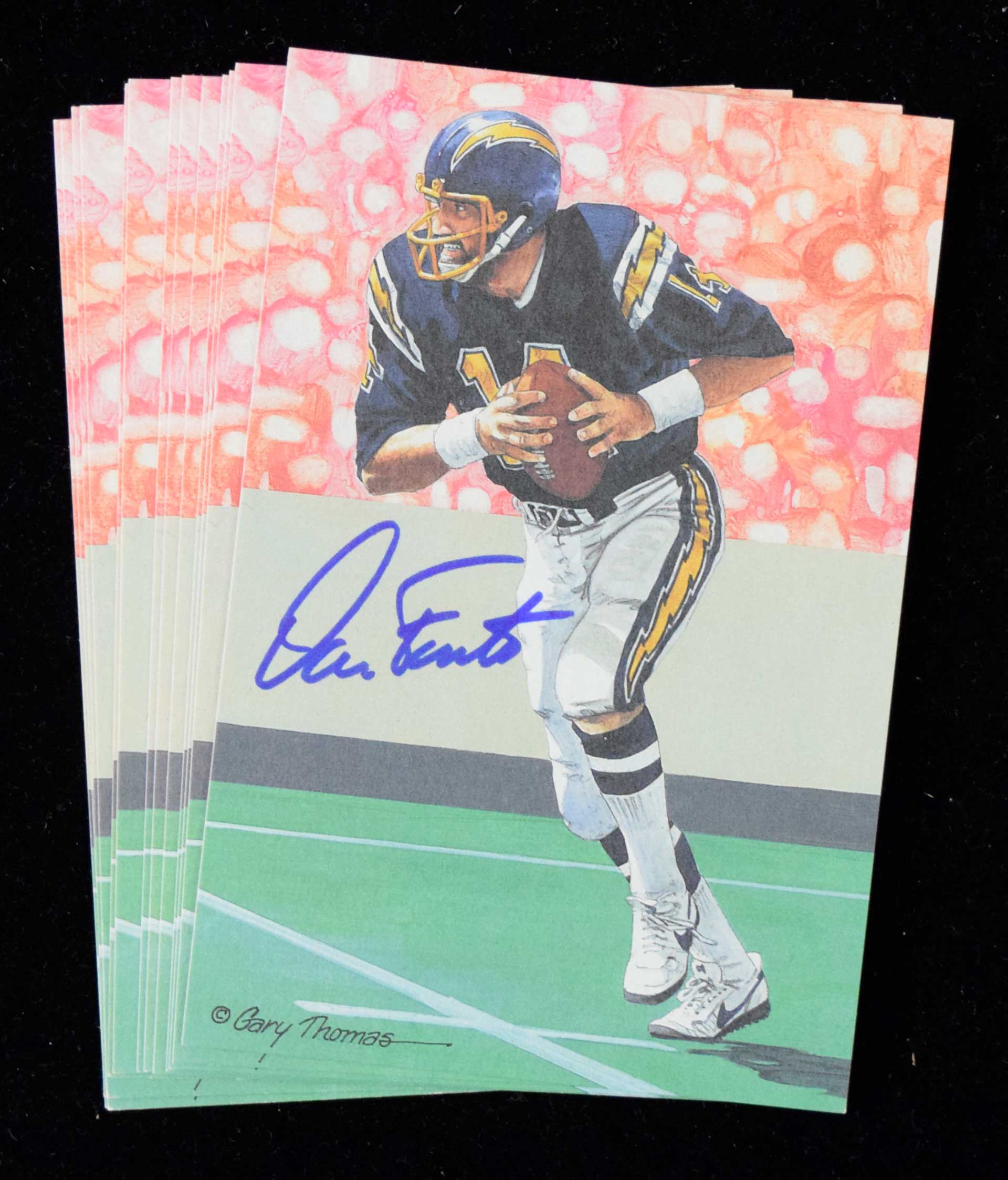Lot of (13)Dan Fouts autographed Goal Line Art postcards (NM) Each signed in marker rating 9 to 9/10 out of 10: NM