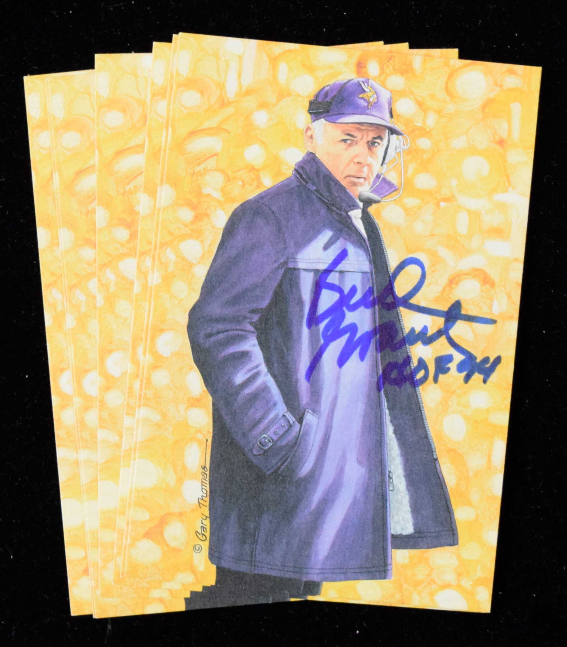 Lot of (7) Bud Grant autographed Goal Line Art postcards (NM) Each signed in marker rating 9 to 9/10 out of 10: NM