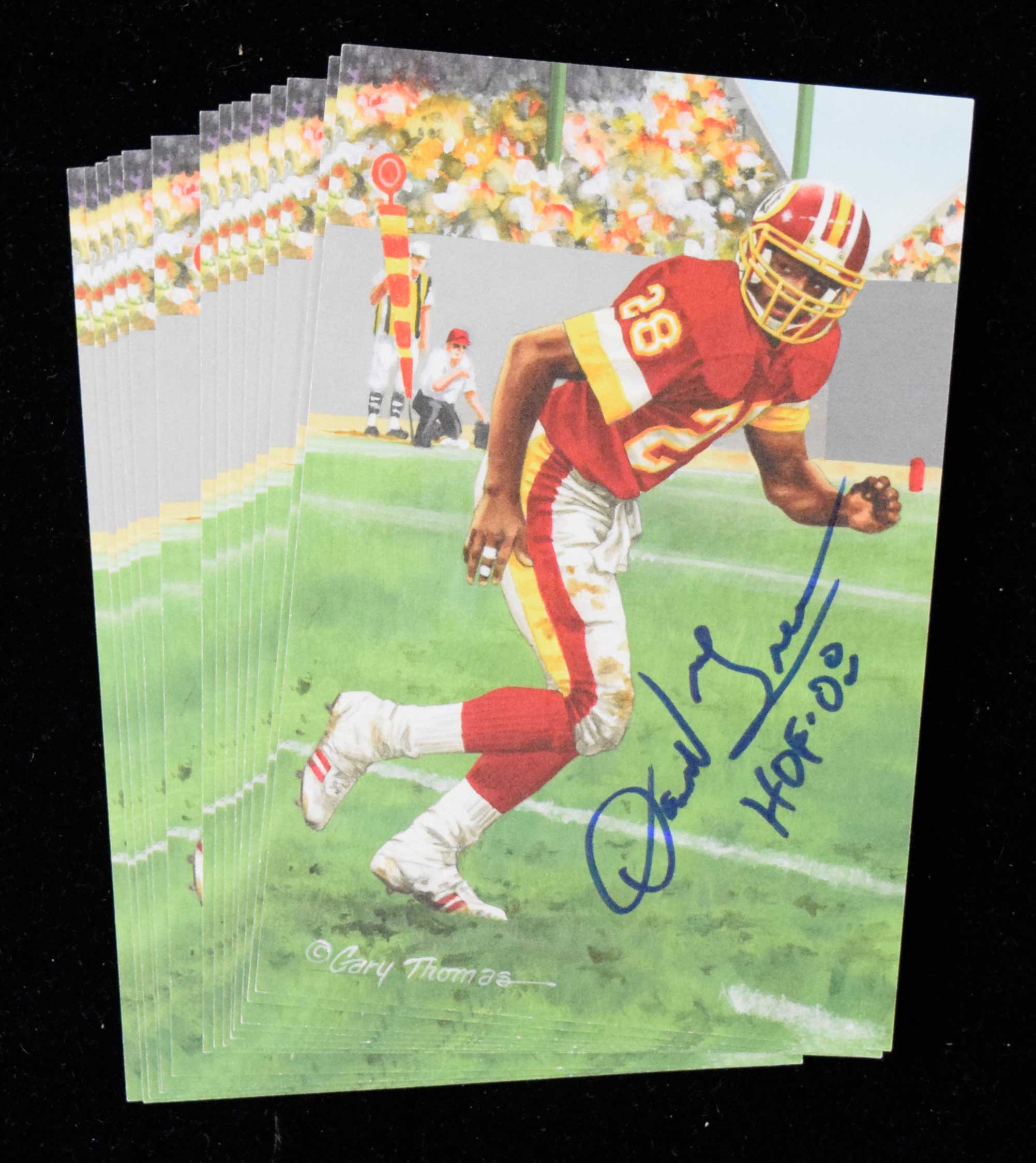 Lot of (15) Darrell Green autographed Goal Line Art postcards (NM) Each signed in marker rating 9 to 9/10 out of 10: NM