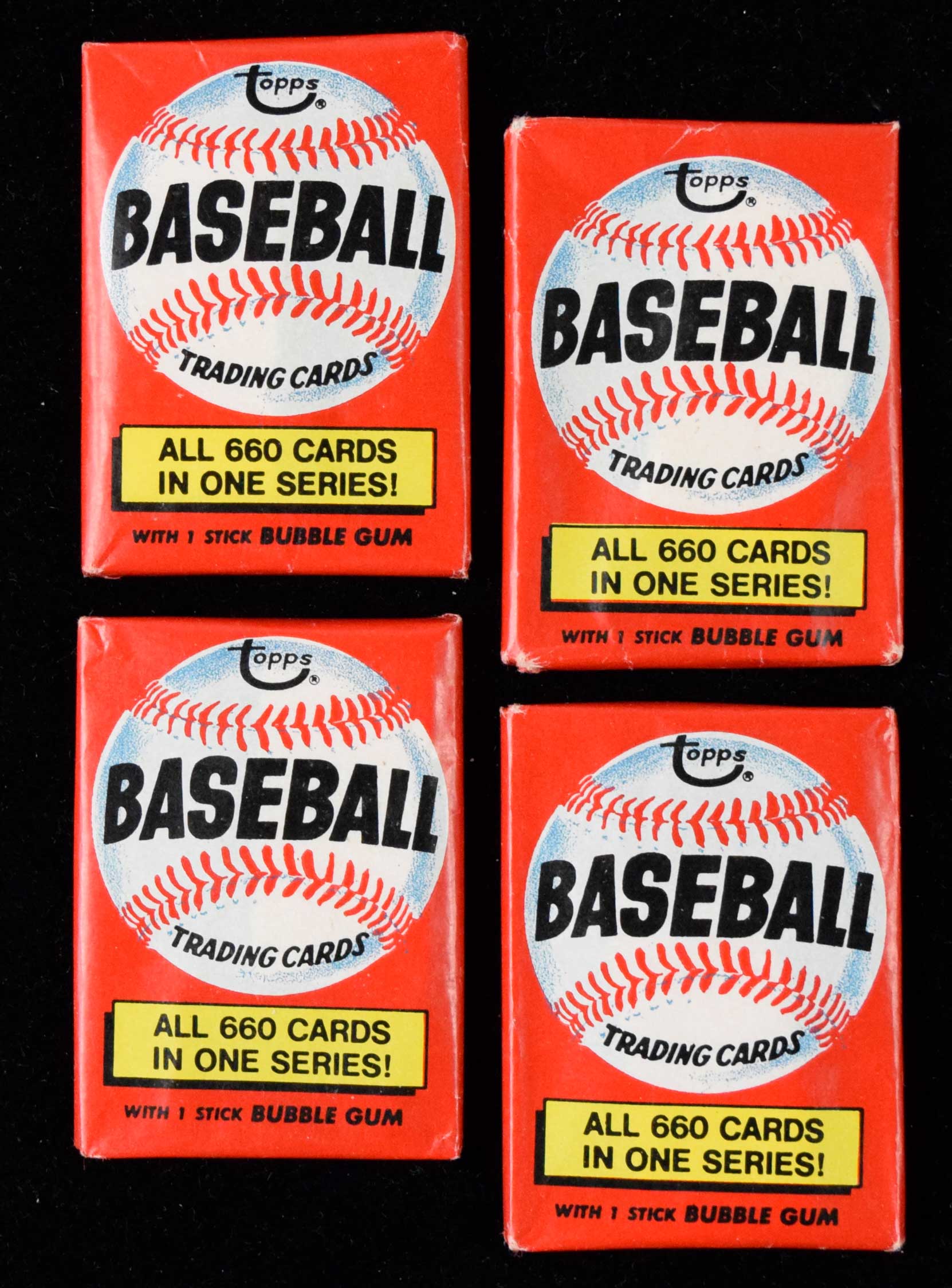 Lot of (4) 1976 Topps Baseball unopened wax packs (EX) Factory sealed as issued with some mild general storage and handling wear: EX