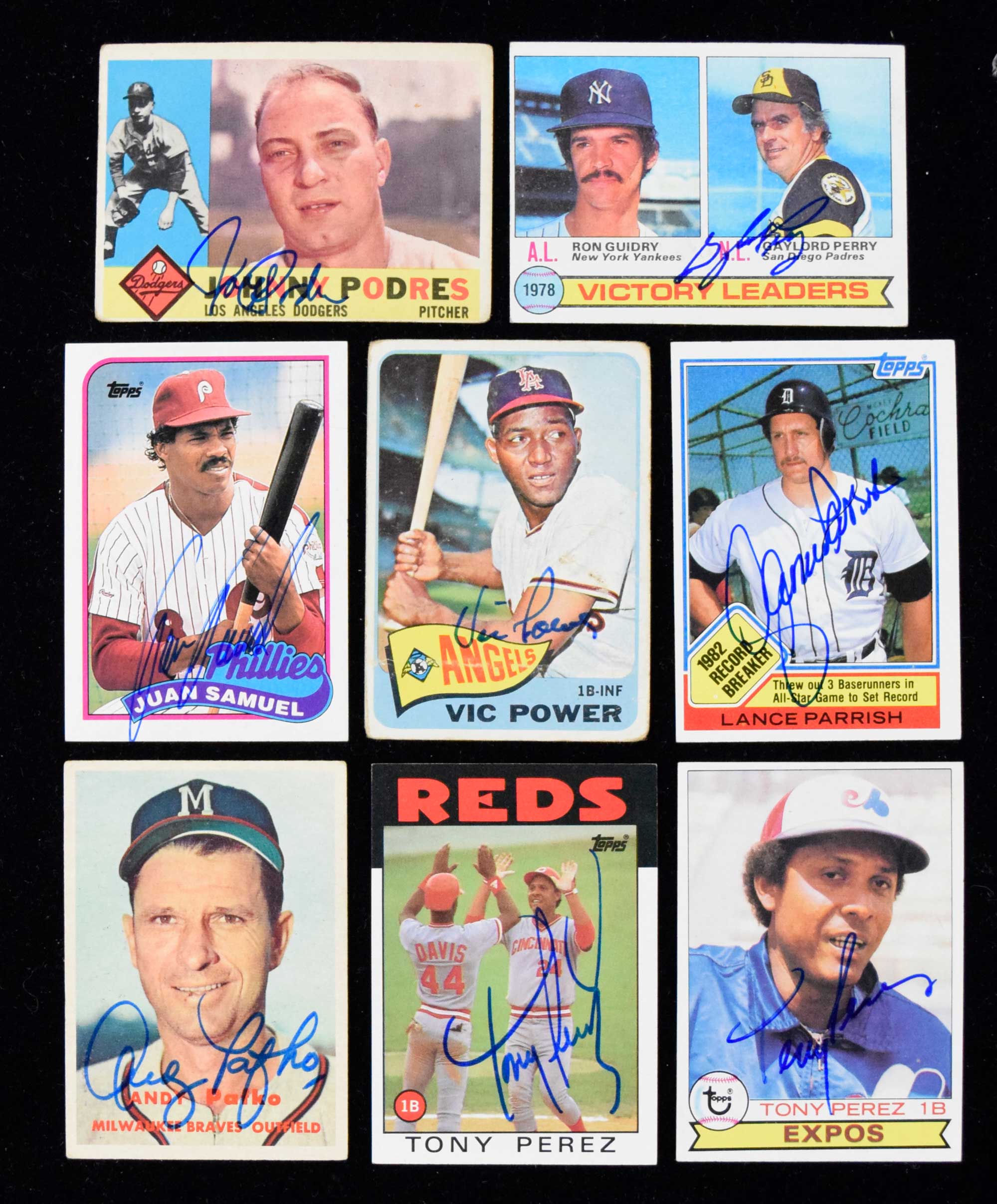 Description:Lot of approx. (750) autographed baseball cards (VG-EX/MT) Full (800) count box of autographed cards with the majority dating to the 1980s but there are some 1970s and some earlier. Some players are represented by (1) card, others by many. Signatures rate generally rate 7 to 9 out of 10 with some lesser and there are varying degrees of handling wear throughout. PLEASE NOTE: cards have been screened for authenticity however there are surely a few secreterial or otherwise non-authentic pieces mixed in. Signers include Juan Samuel, Willie Randolph, Dick Radatz, Dave Rickets, Bill Russell, Bill Rigney, Johnny Ray, Johnny Podres, Juan Pizzaro, Rico Petrocelli, Gaylord Perry Tony Perez, Terry Pendelton, Vic Power, Bill Pierce, Wes Parker, Jim Perry, Andy Pafko, Marty Pattin, Lance Parrish, Milt Pappas, and others: VG-EX/MT