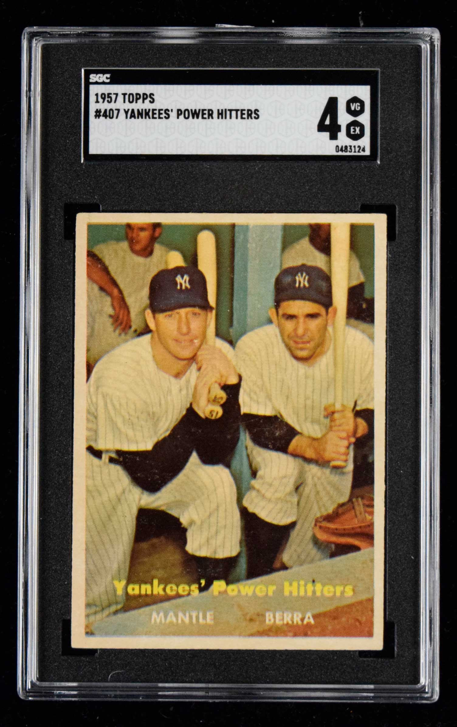1957 Topps #407 Mickey Mantle and Yogi Berra Power Hitters (SGC 4 VG EX) Well centered with a hint of light wear: SGC 4 VG EX