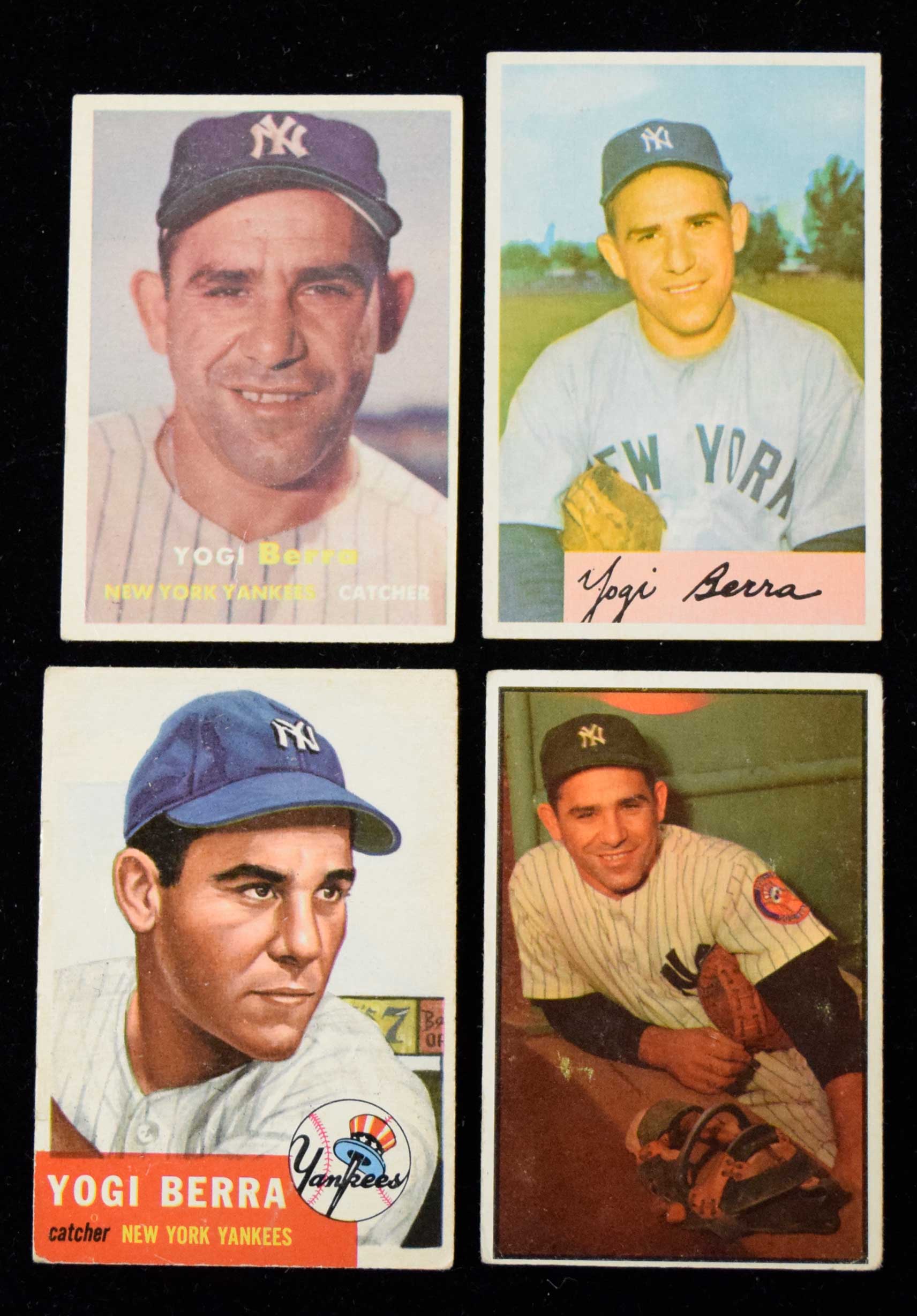 Lot of (4) 1953-1957 Topps and Bowman Yogi Berra cards (GD-VG) Includes 1953 Topps #104 (GD), 1953 Bowman Color #121 (VG), 1954 Bowman #161 (GD), and 1957 Topps #2 (VG): GD-VG