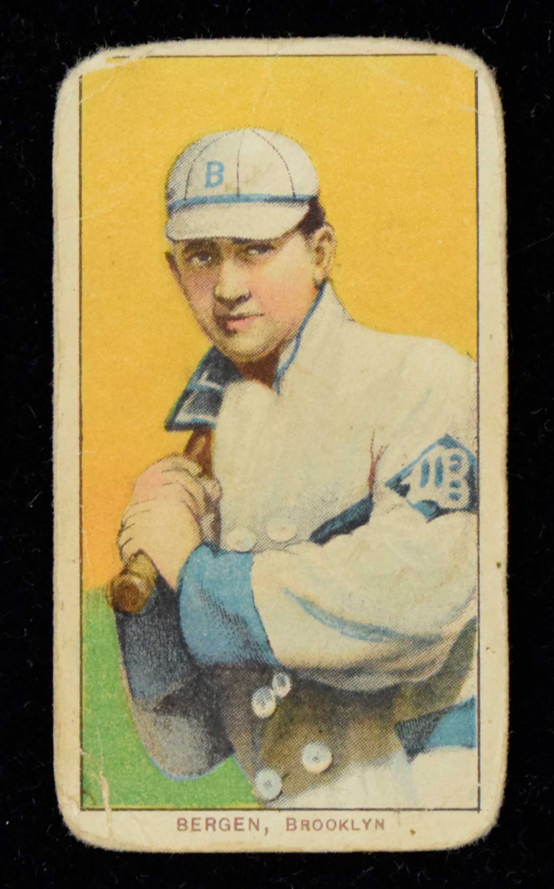1909-11 T206 Hindu back Bill Bergen (batting) (FR) Rare back with card showing wear throughout: FR
