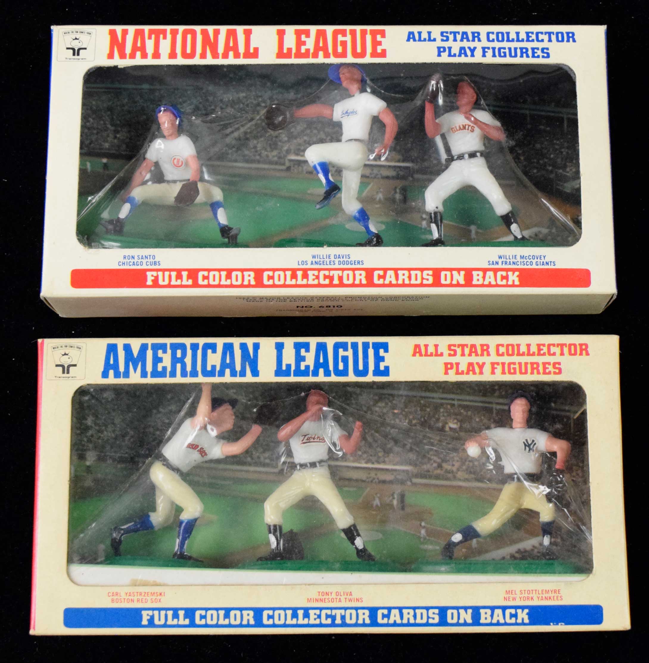 Description:1970 Transogram complete boxes (2) incl. McCovey/Santo and Yastrzemski (VG and EX) Includes box with Yaz, Tony Oliva, and Mel Stottlemyer which has some mild general wear including a crease to the Yaz card; box with Ron Santo, Willie Davis, and Willie McCovey which has some light scattered wear: VG and EX
