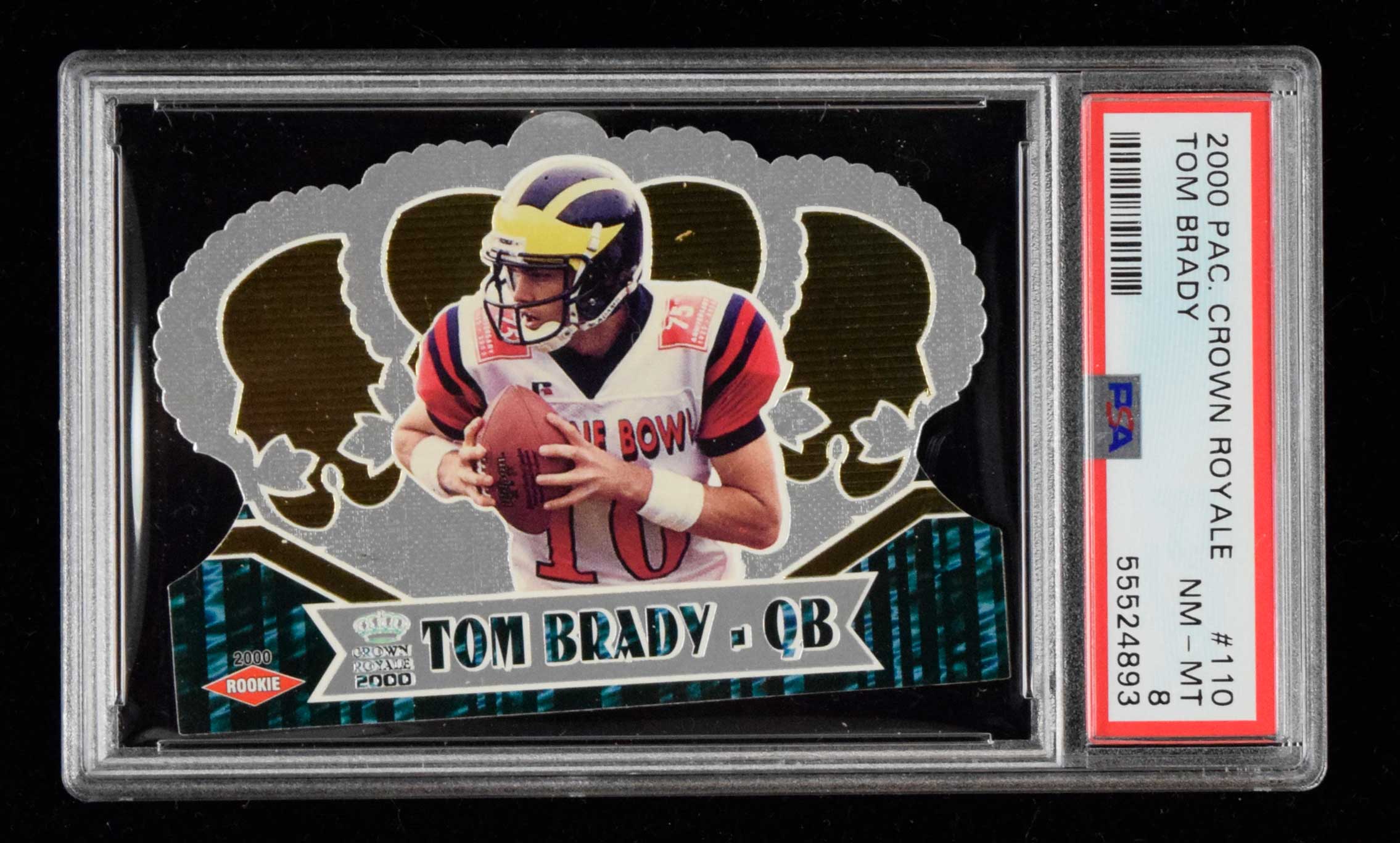 2000 Pacific Crown Royale #110 Tom Brady Rookie (PSA NM-MT 8) Rookie card in "pack fresh" condition with no mentionable wear: PSA NM-MT 8 ($400-$600)