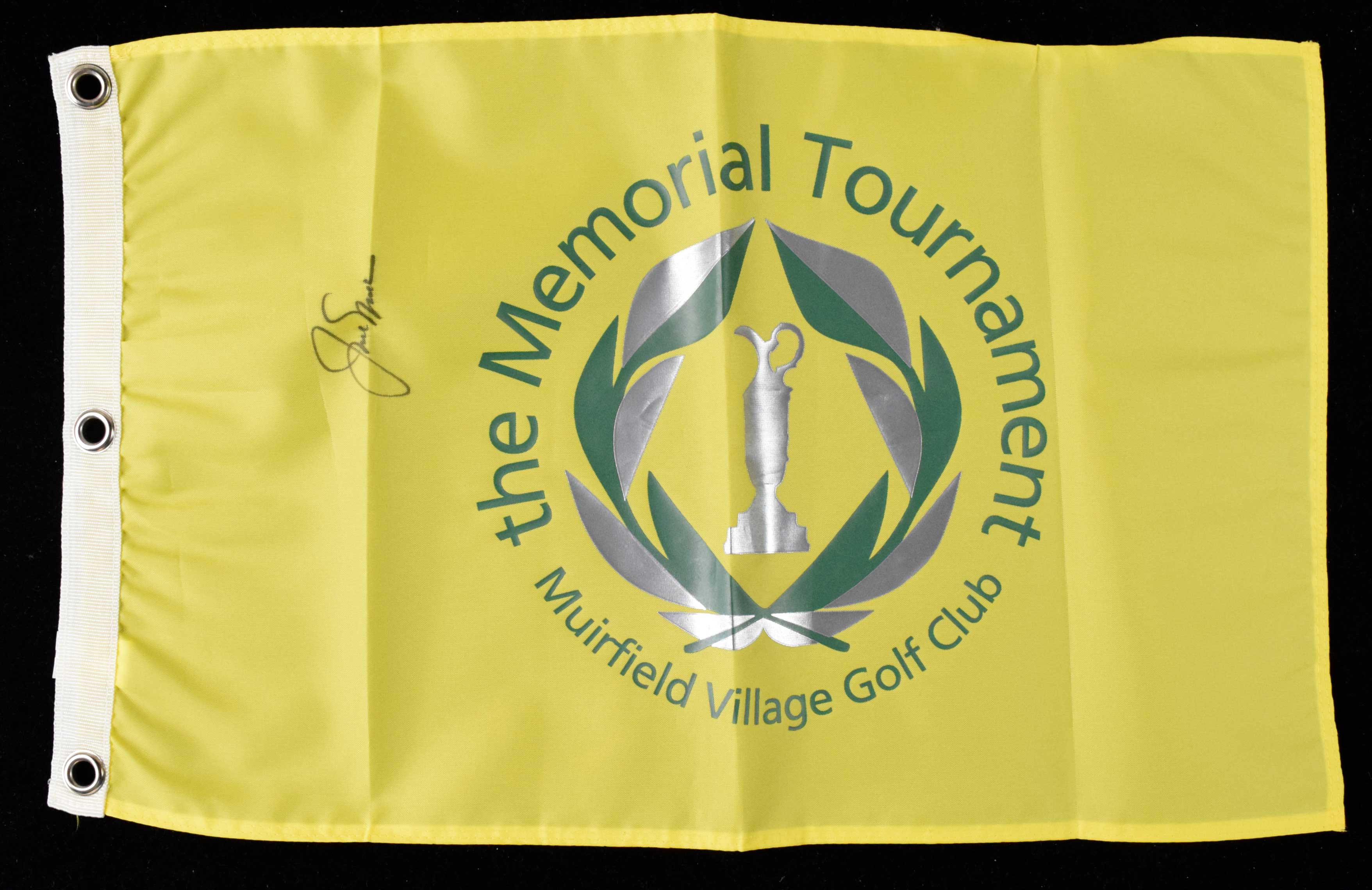 Description:Jack Nicklaus autographed Memorial Tournament flag (EX/MT) Signed in marker rating 8 out of 10. Several fold lines/creases could possibly be ironed out: EX/MT