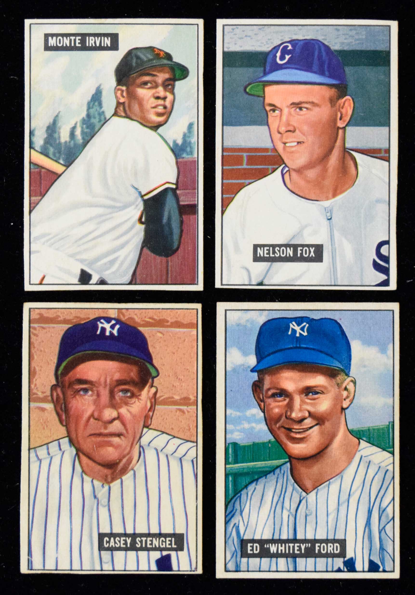 Description:Lot of (23) 1951 Bowman baseball cards incl. White Ford Rookie (see description) NOTE: all cards are in card savers with PSA labels affixed noting that they have evidence of trimming (they were not encapsulated and are offered as authentic but altered). Includes #1 Whitey Ford, 181 Stengel, 187 Rosen, 196 Pierce, 198 Irvin, 207 Southworth, 217 Page, and 232 Fox: see description