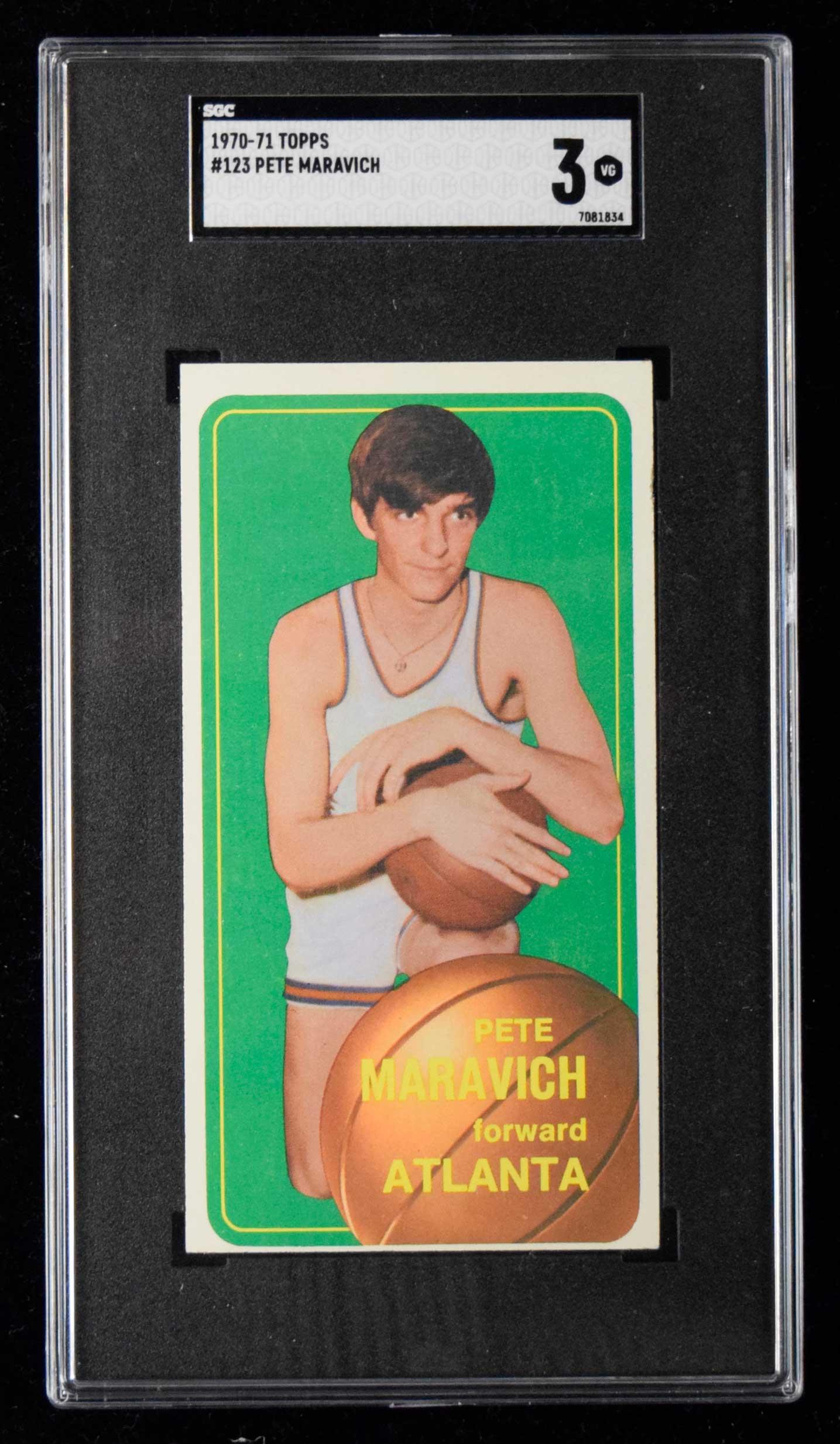 1969-70 Topps #123 Pete Maravich (SGC 3 VG) Key Rookie card displays a touch of light wear: SGC 3 VG ($300-$500)