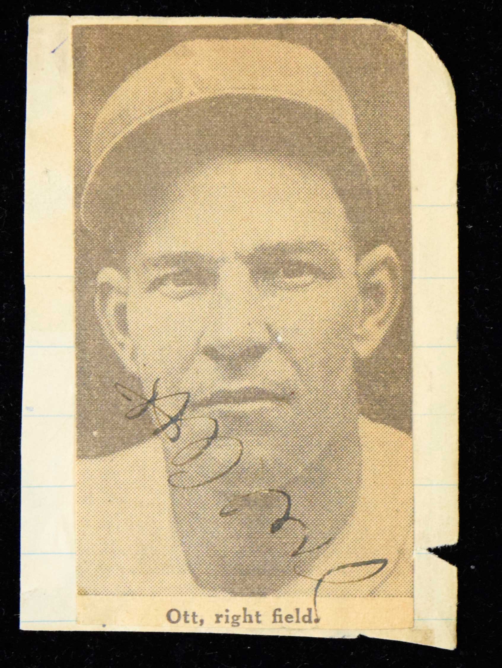 Description:Mel Ott autograph (EX) Small image clipped from a publication and mounted to paper (2.5"x3.5") has been signed fountain pen. Signature rates 7 out of 10 and there is some light toning and wear: EX
