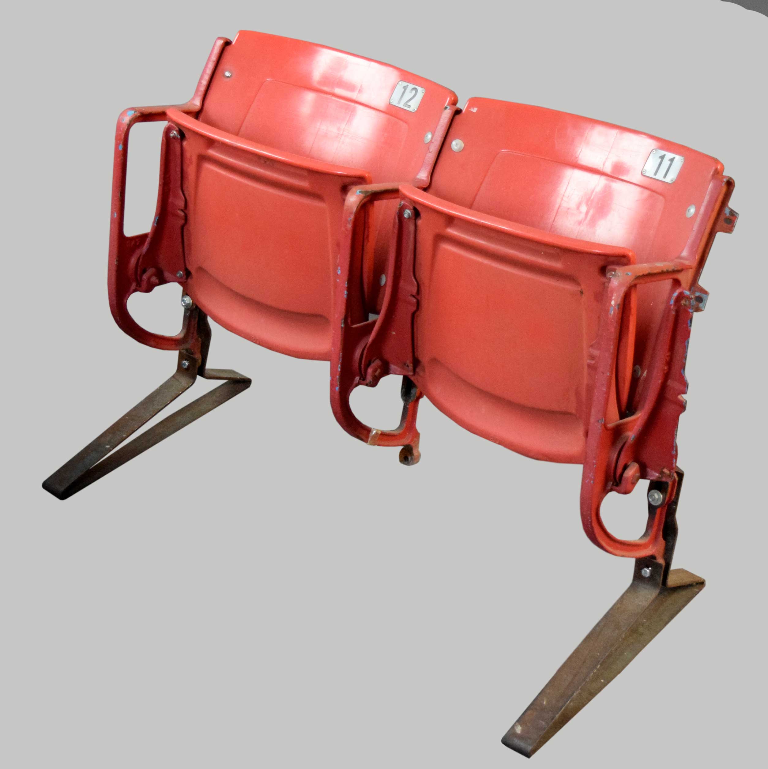 Description:Connected pair of Fulton County Stadium seats (EX-EX/MT). Seats 11 and 12 from unknown section of Atlanta's Fulton County Stadium. Freestanding, with normal wear: EX-EX/MT