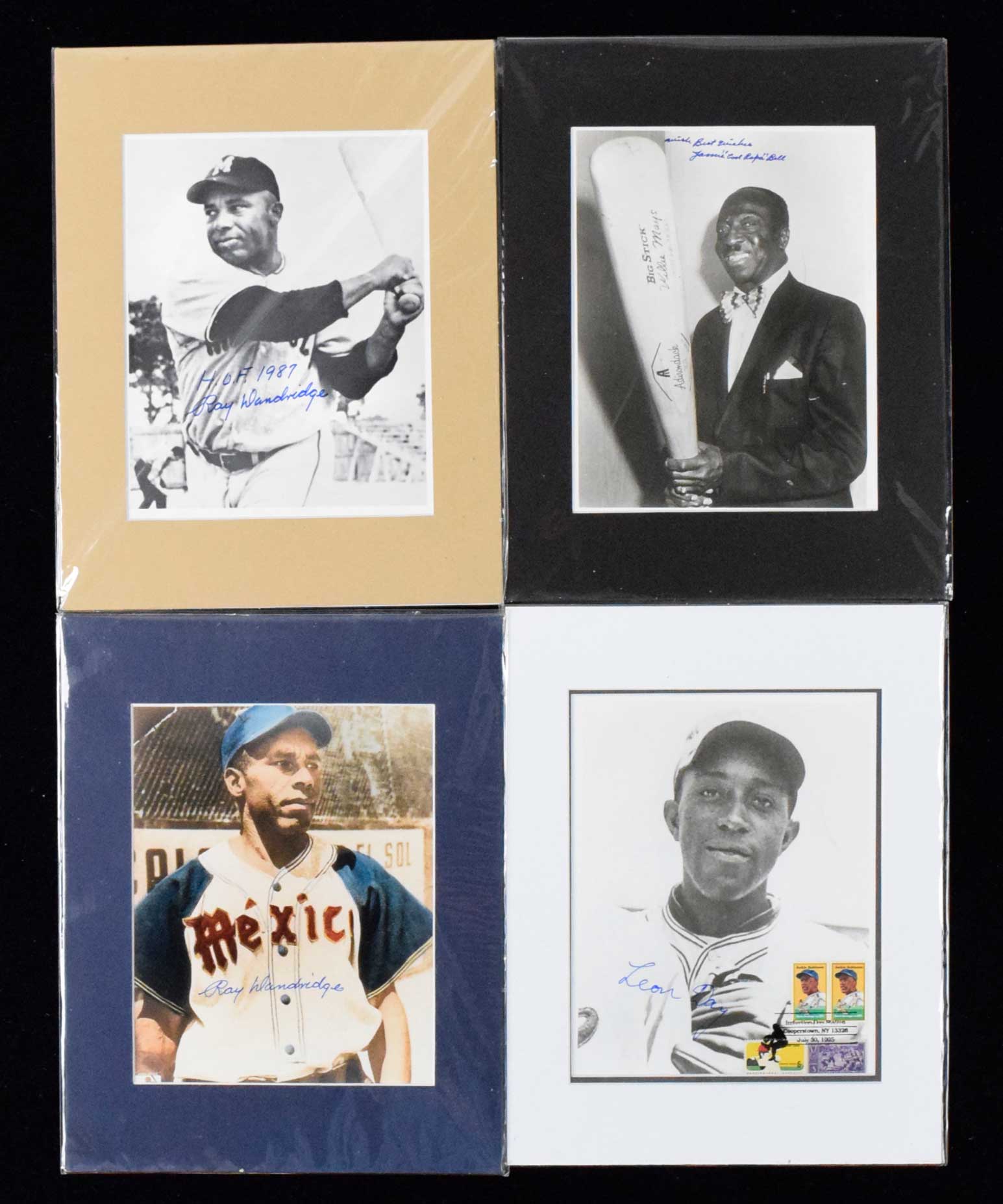 Description:Lot of (7) Negro League HOFers signed matted photographs (NM-NM/MT). All appear to be 8"x10" photos in 11"x14" matting. Single-signed photos include (2) different James "Cool Papa" Bell, (2) different Ray Dandridge, and Leon Day. Also includes a photo dual-signed by Monte Irvin and Buck Leonard; and a photo multi-signed by Judy Johnson, Monte Irvin, Cool Papa Bell, and Buck Leonard (smudges). Signatures rate 4/5 to 10 (avg 8) out of 10: NM-NM/MT