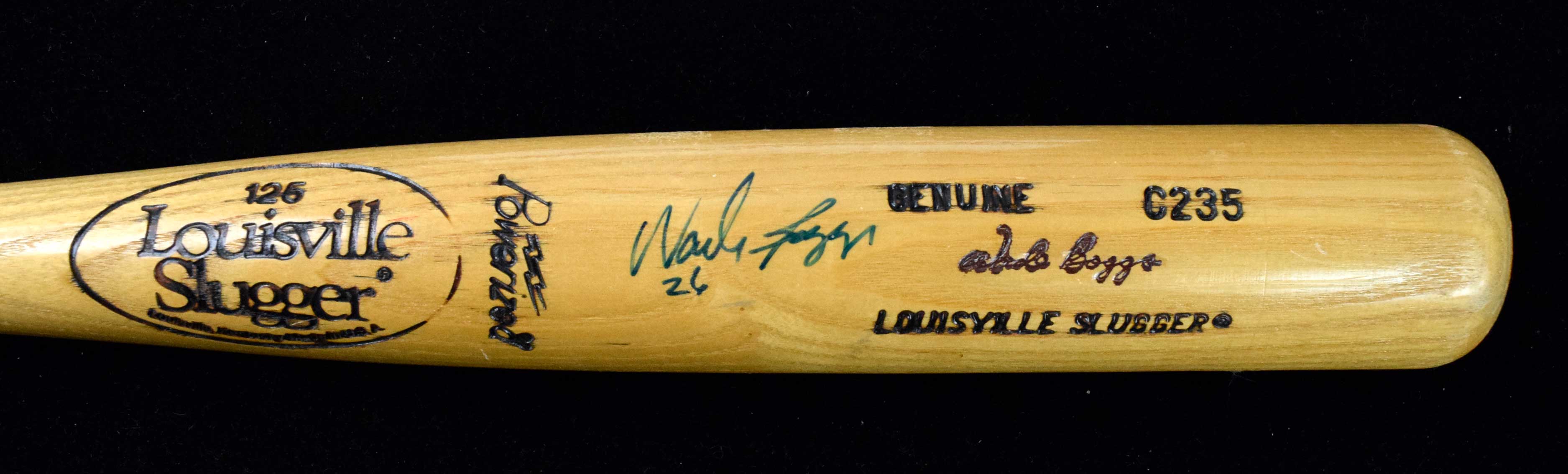 Description:Wade Boggs signed pro stock baseball bat, c.1986 (NM). 34" Louisville Slugger C235 Wade Boggs pro stock bat signed by Boggs in blue marker. Signature rates 8/9 out of 10: NM