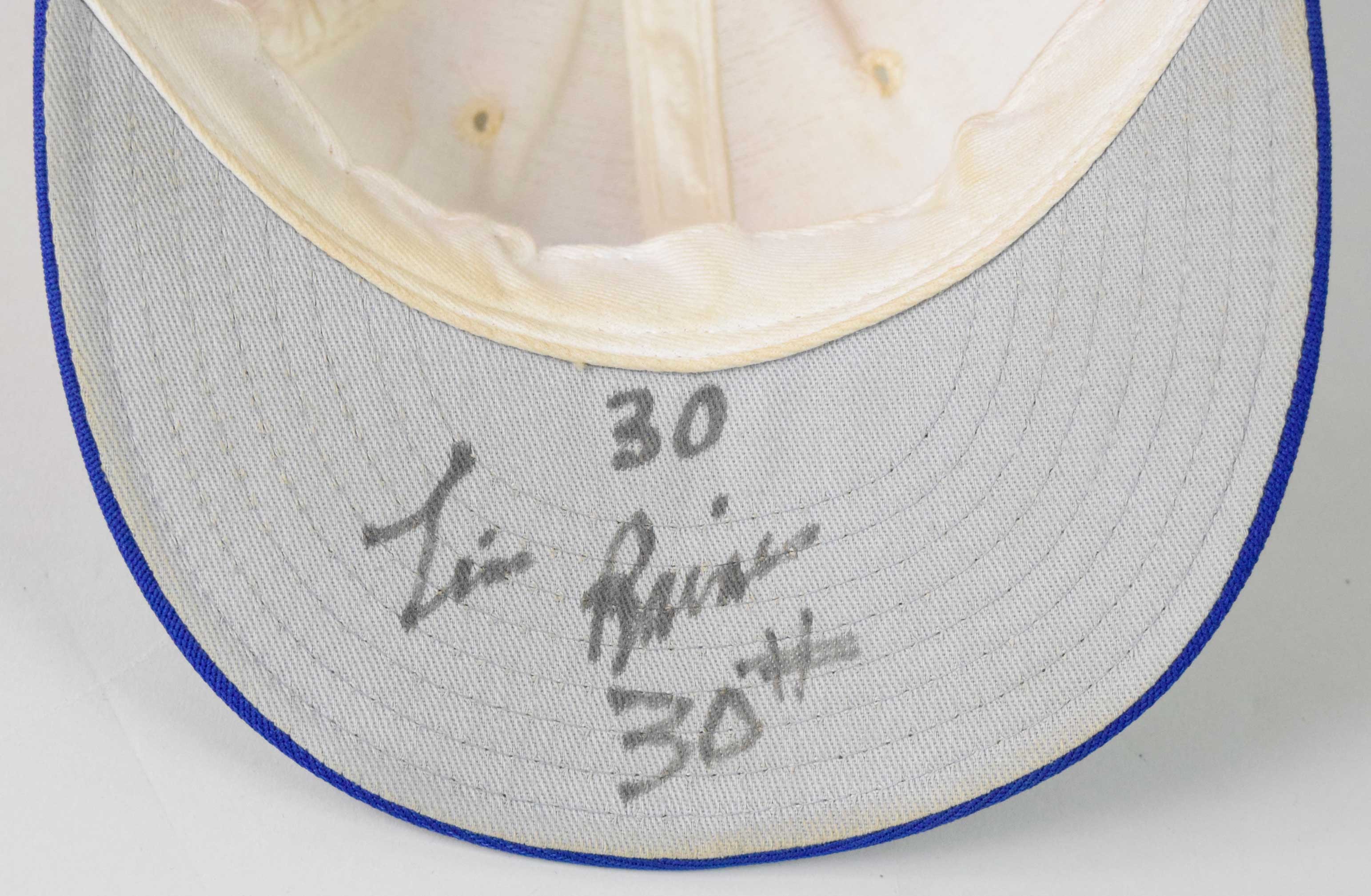 Description:Tim Raines signed Montreal Expos professional model hat, c.1988-90 (EX). New Era "Pro Model" Expos hat with his #30 written under the brim. Raines signed under the brim in black marker. Signature rates 8 out of 10. Shows wear including light sweat staining. MLB and size tags have been cut/torn off: EX