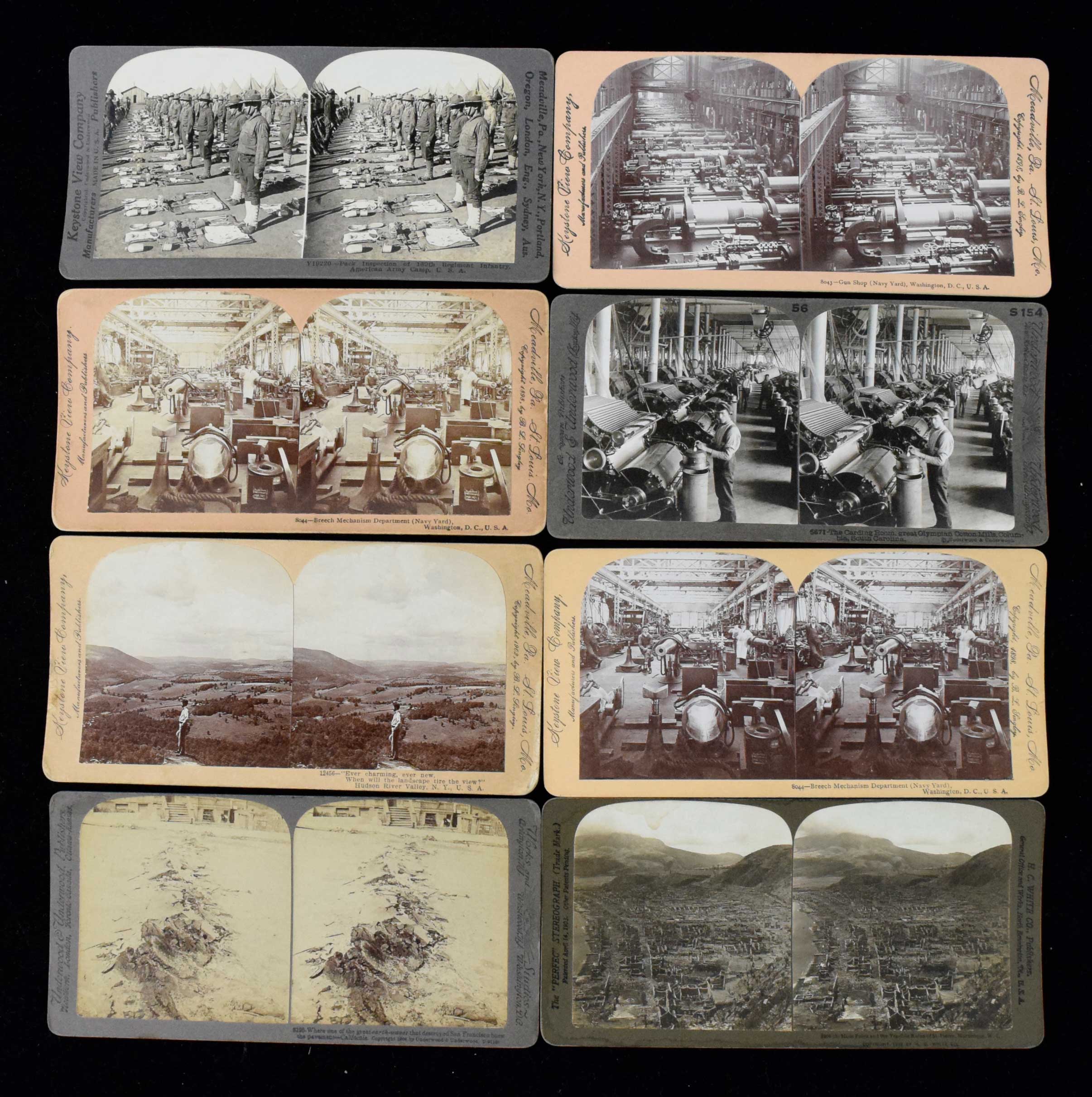 Description:Lot of (52) vintage stereoview cards, c.late 1800s (VG-NM). Images include military, factories, coal mining, construction, boating, Niagara Falls, and others. Various conditions throughout the lot. Most appear to average EX-EX/MT overall. Range: VG-NM