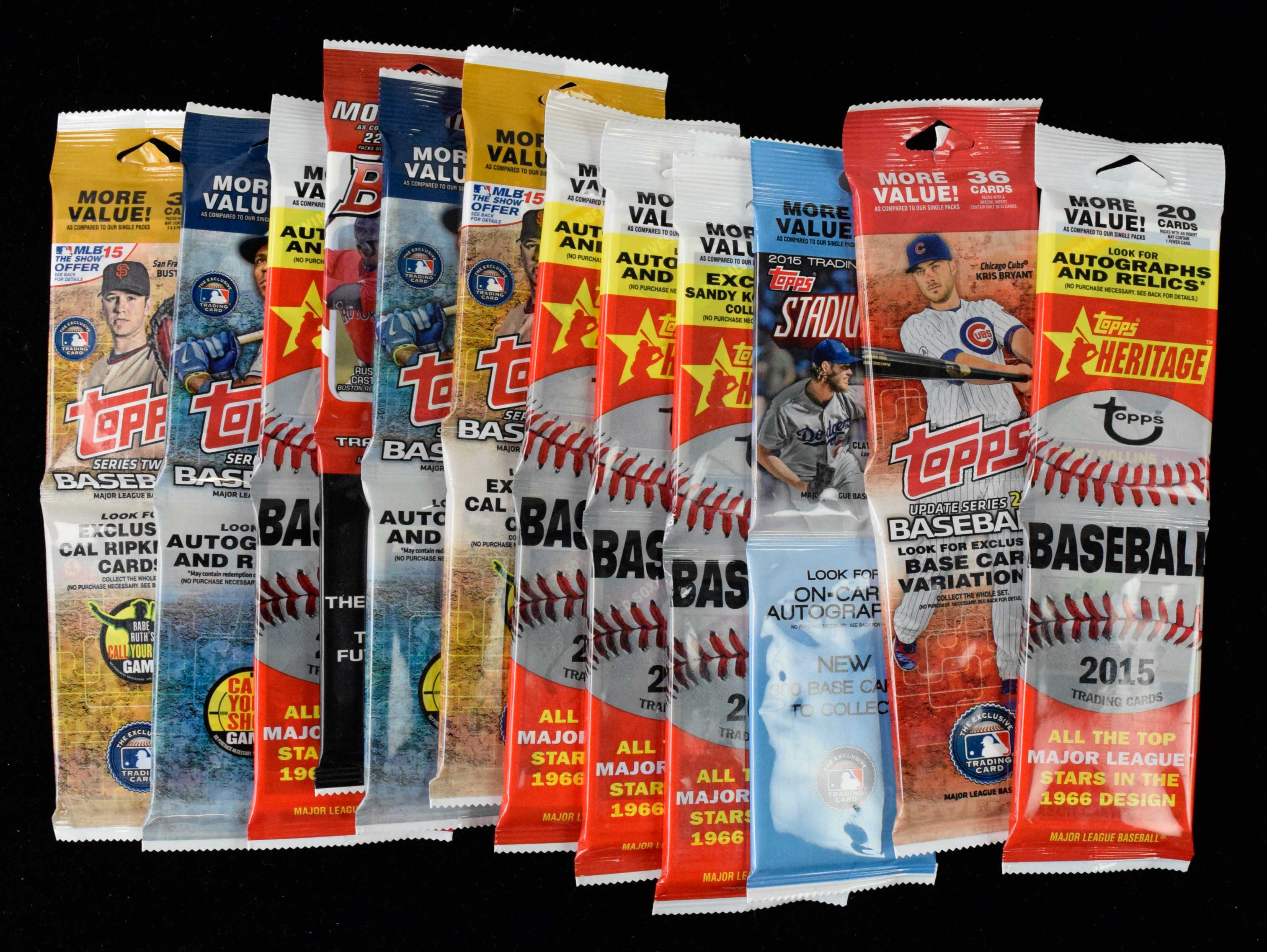 Lot of (15) 2015 baseball card jumbo value packs (NM-NM/MT overall). Includes (3) Topps series 1, (2) Topps series 2, (2) Topps Update, (6) Topps Heritage, Topps Stadium Club, and Bowman: NM-NM/MT overall