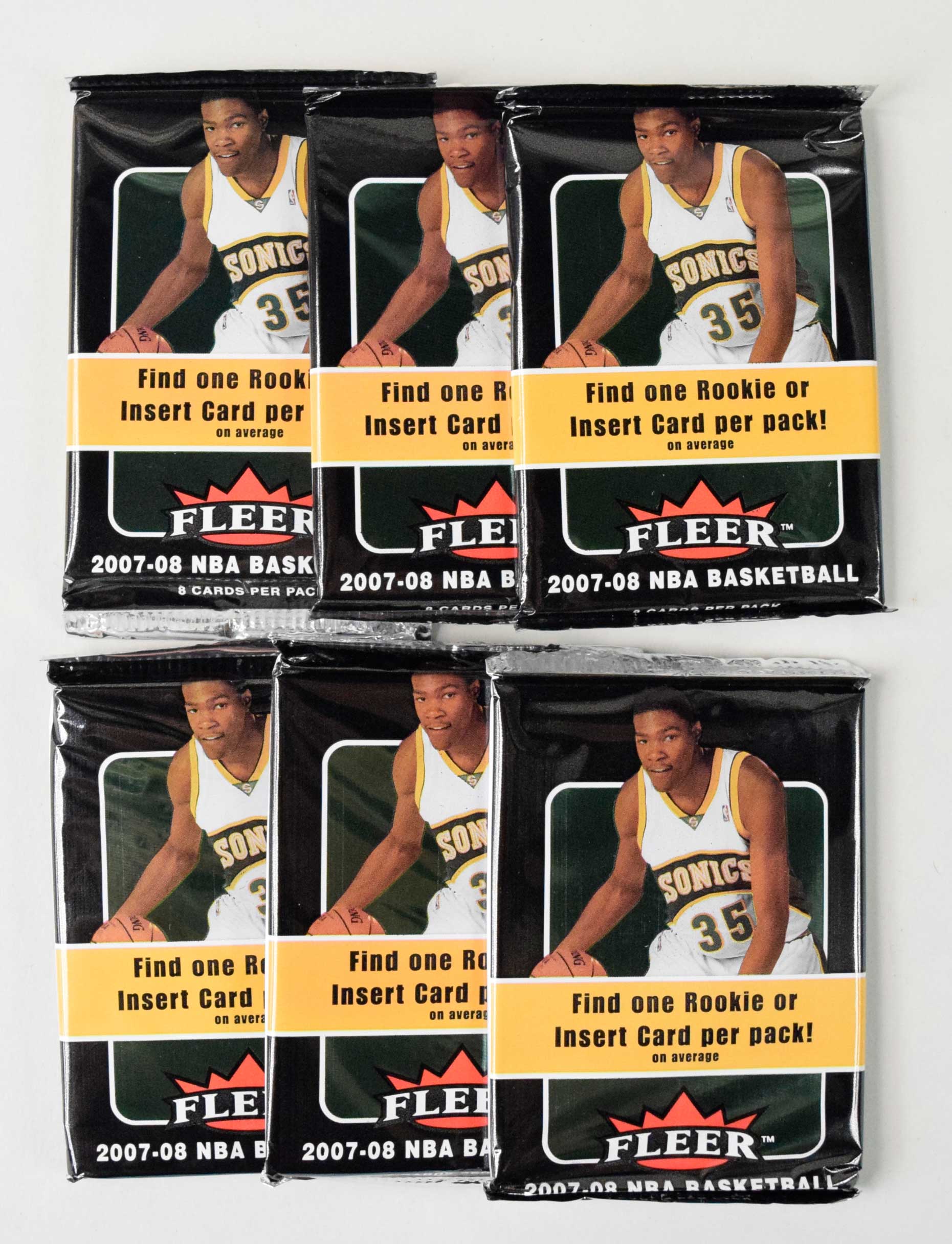Description:Lot of (6) 2007-08 Fleer Basketball wax packs (NM-NM/MT overall). Each pack contains 8-cards, with one rookie or insert card per pack on average (as noted on the wrappers): NM-NM/MT overall