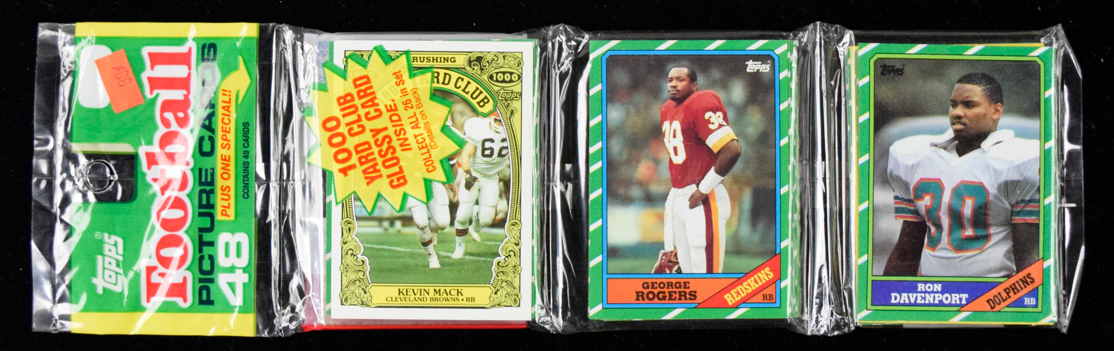 1986 Topps Football rack pack (NM overall). Contains 49-cards including Jackie Slater visible on the back: NM overall
