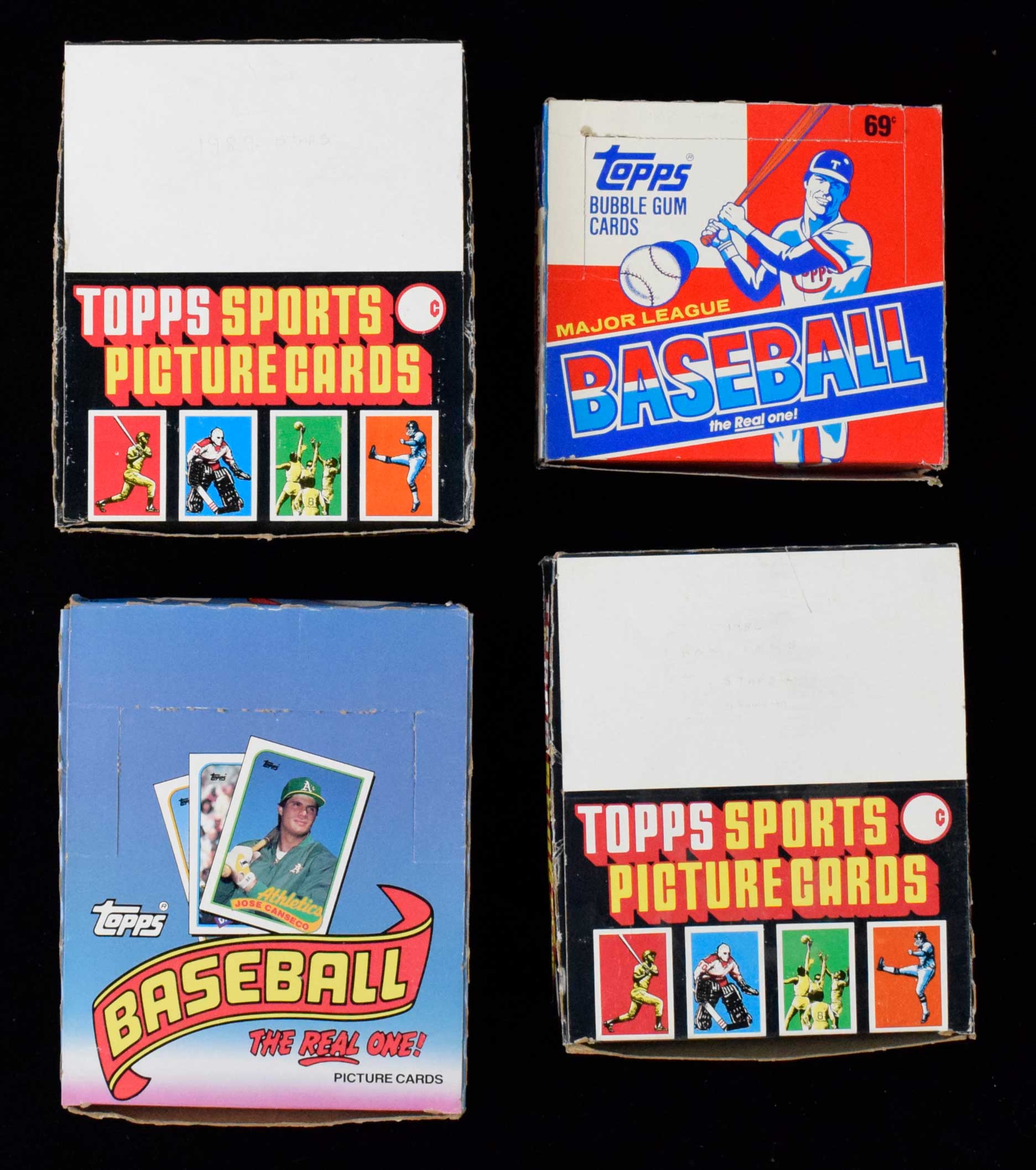 Lot of (5) Topps Baseball cello and rack pack boxes from 1986-1989 (NM-NM/MT overall). Includes 1986 Topps rack box, (2) 1987 Topps rack boxes, 1988 Topps cello box, and 1989 Topps rack box: NM-NM/MT overall