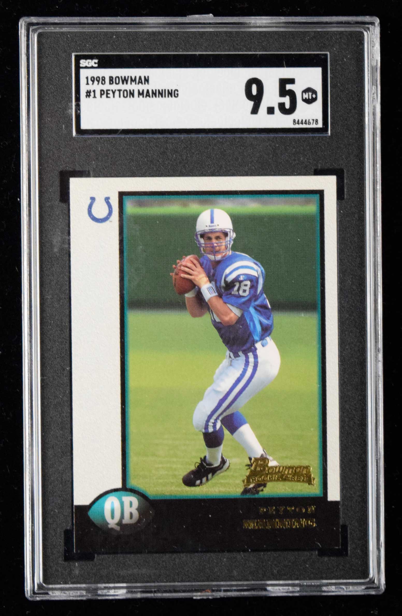1998 Bowman #1 Peyton Manning rookie card graded SGC 9.5 (MT+).