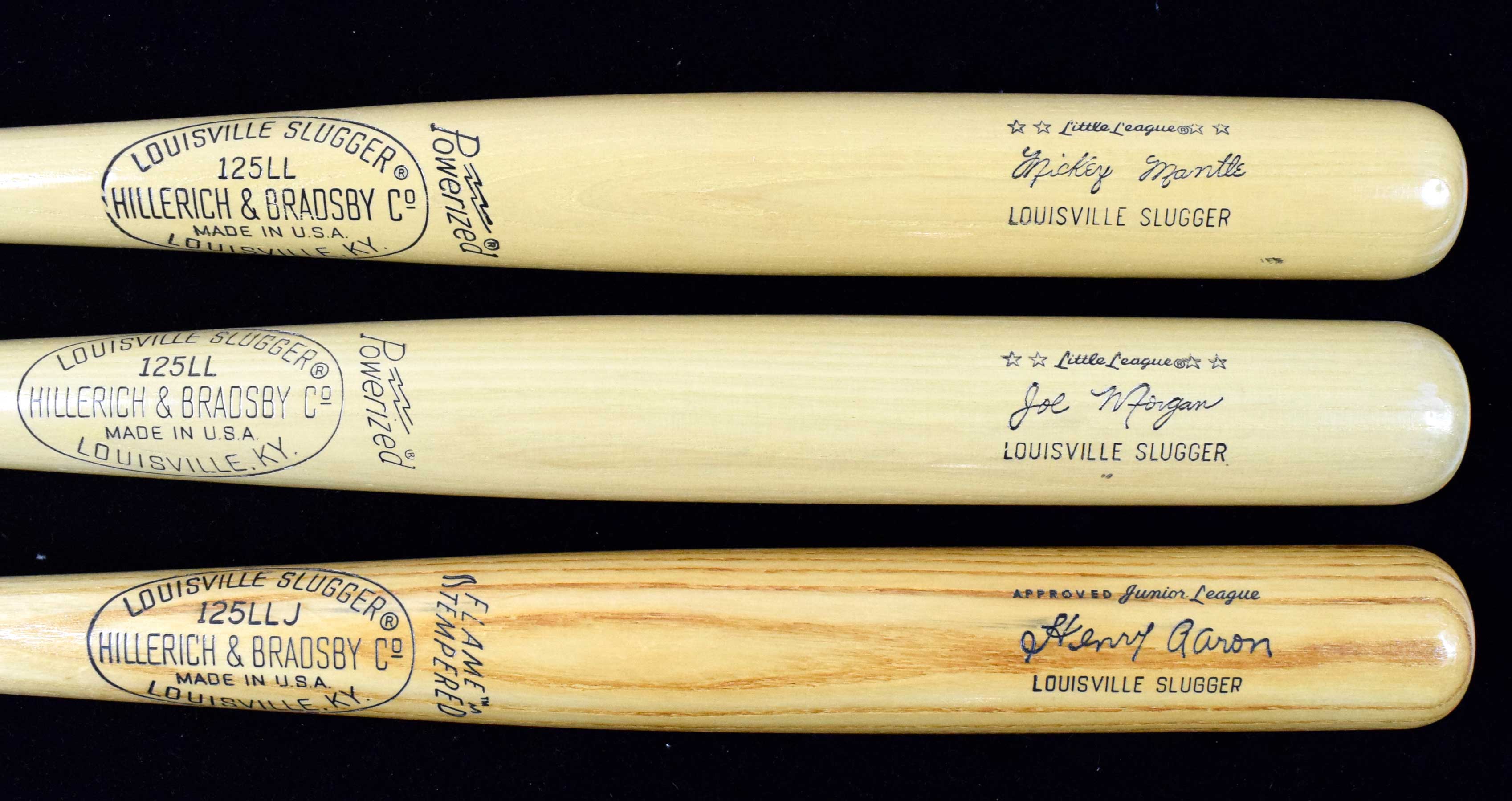 Description:Lot of (5) high grade c.1970s Louisville Slugger store model bats (NM) Strong condition lot showing little to no mentionable wear. All measure (30) or (31) inches (unless noted). Includes Mickey Mantle, Henry Aaron, Garry Maddox, Johnny Bench, Joe Morgan (33") :NM