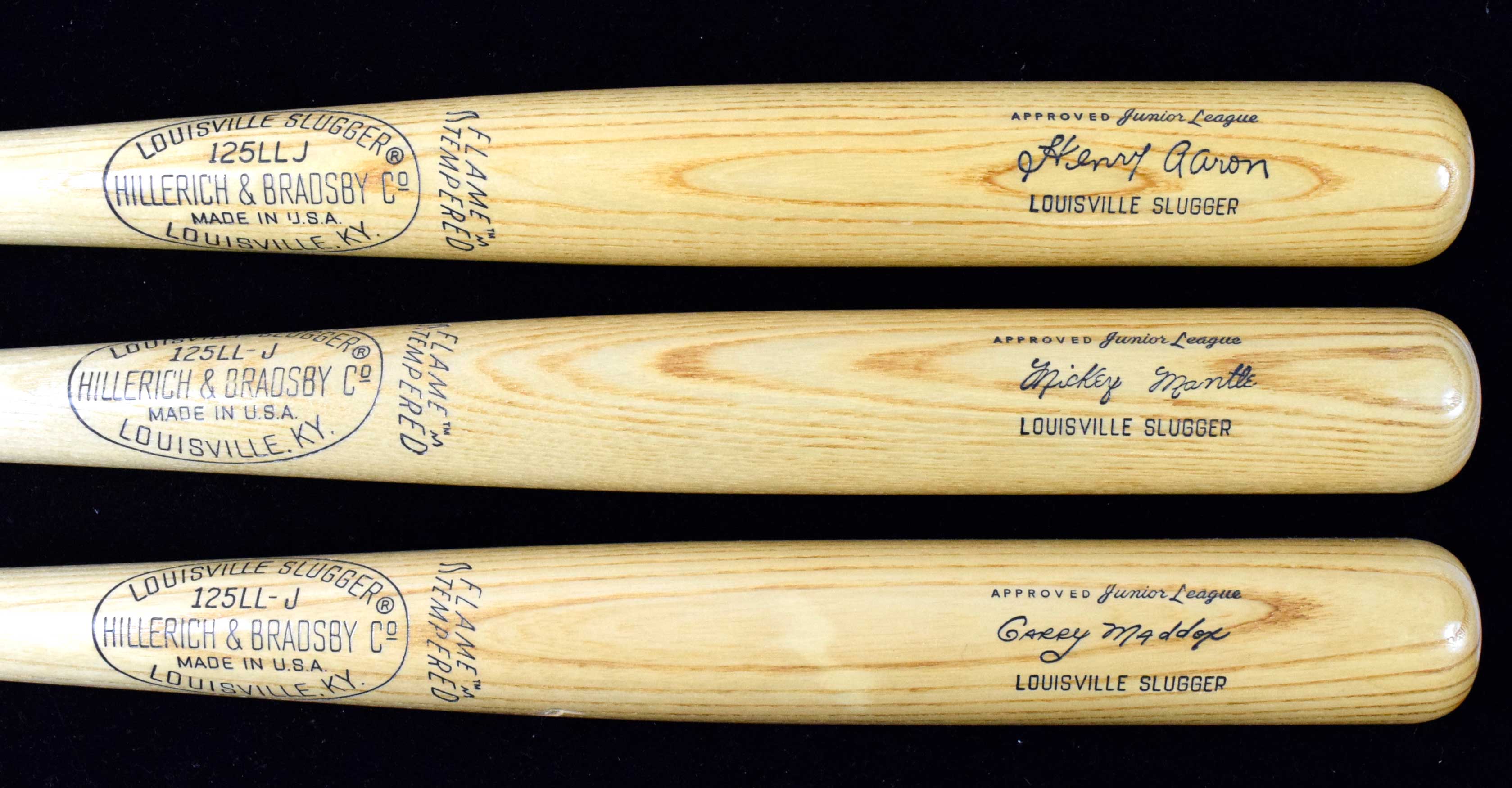 Description: Lot of (5) high grade c.1970s Louisville Slugger store model bats (NM) Strong condition lot showing little to no mentionable wear. All measure (30) or (31) inches (unless noted). Includes Mickey Mantle, Henry Aaron, Garry Maddox, Johnny Bench, Joe Morgan:NM