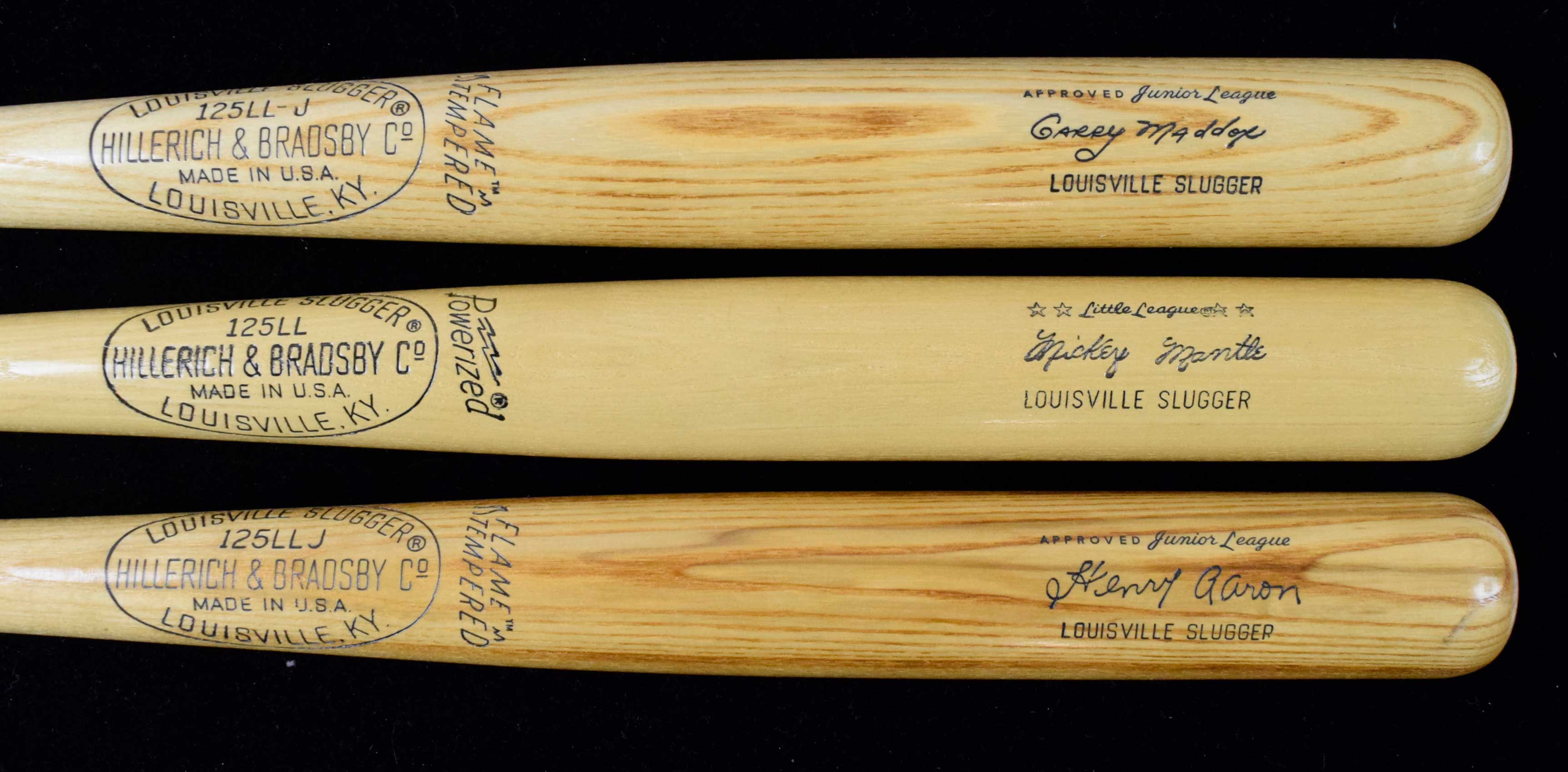 Description:Lot of (5) high grade c.1970s Louisville Slugger store model bats (NM) Strong condition lot showing little to no mentionable wear. All measure (30) or (31) inches (unless noted). Includes Mickey Mantle, Henry Aaron, Garry Maddox, Johnny Bench, Joe Morgan:NM