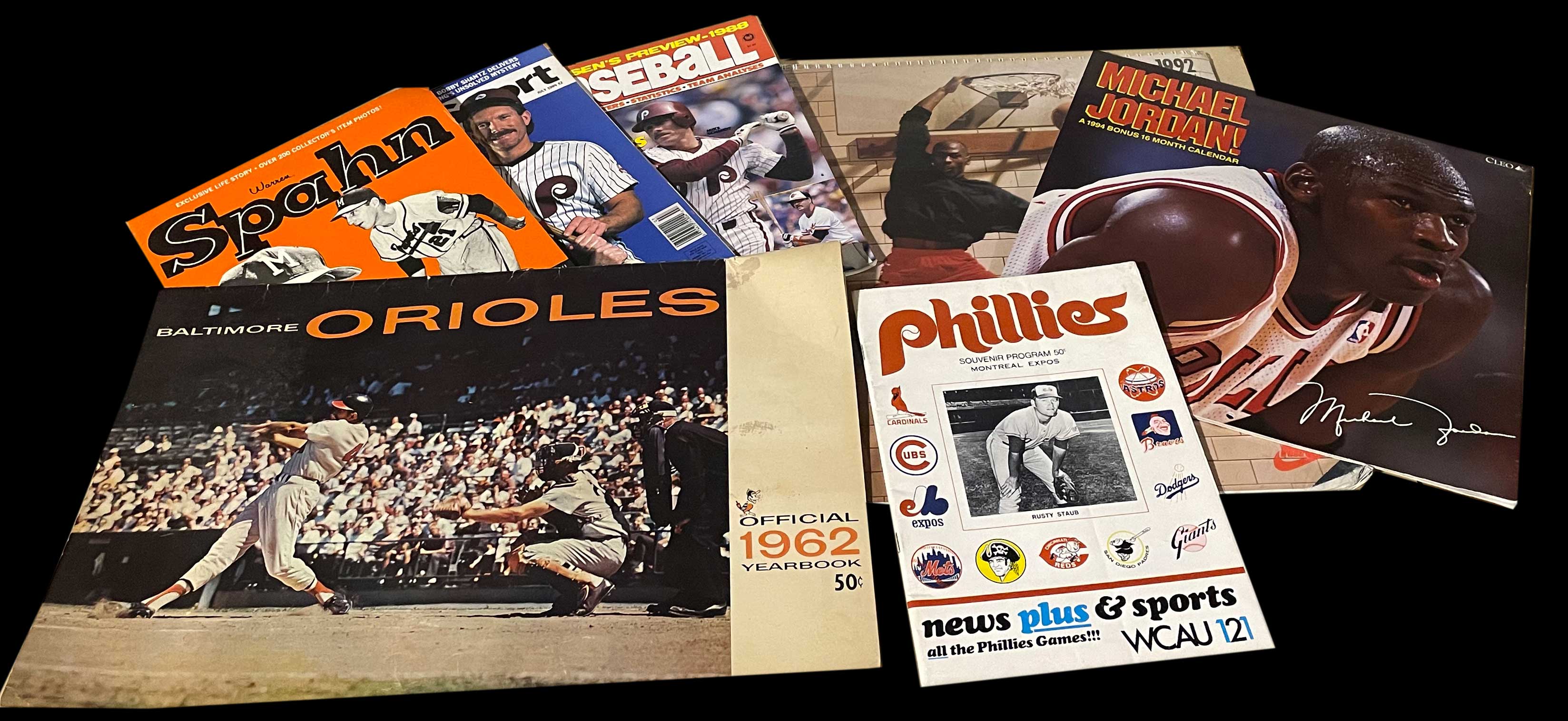 Description:Large lot of assorted sports publications (FR/GD-NM/MT) Consists of (2) 32 gallon trash cans full of various different sports publications including yearbooks, calanders, magazines, programs, and numerous other publications from 1940's- modern : FR/GD- NM/MT