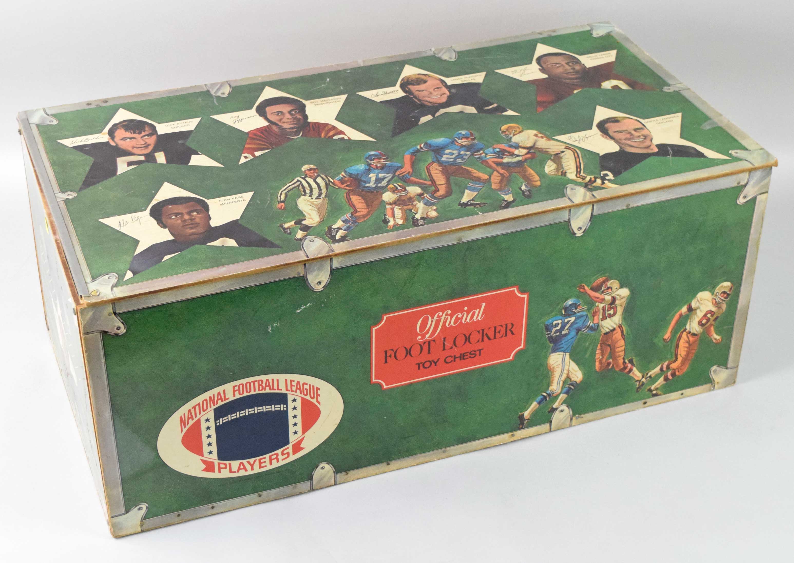 Description:Vintage 1971 NFL Footlocker Toy Chest (EX) Players Depicted: Top: Dick Butkus, Roy Jefferson, Lance Alworth, Willie Lanier, Alan Page, Daryle Lamonica. Sides: Leroy Kelly , Terry Bradshaw. Chest has some scartered surface wear from storage : EX