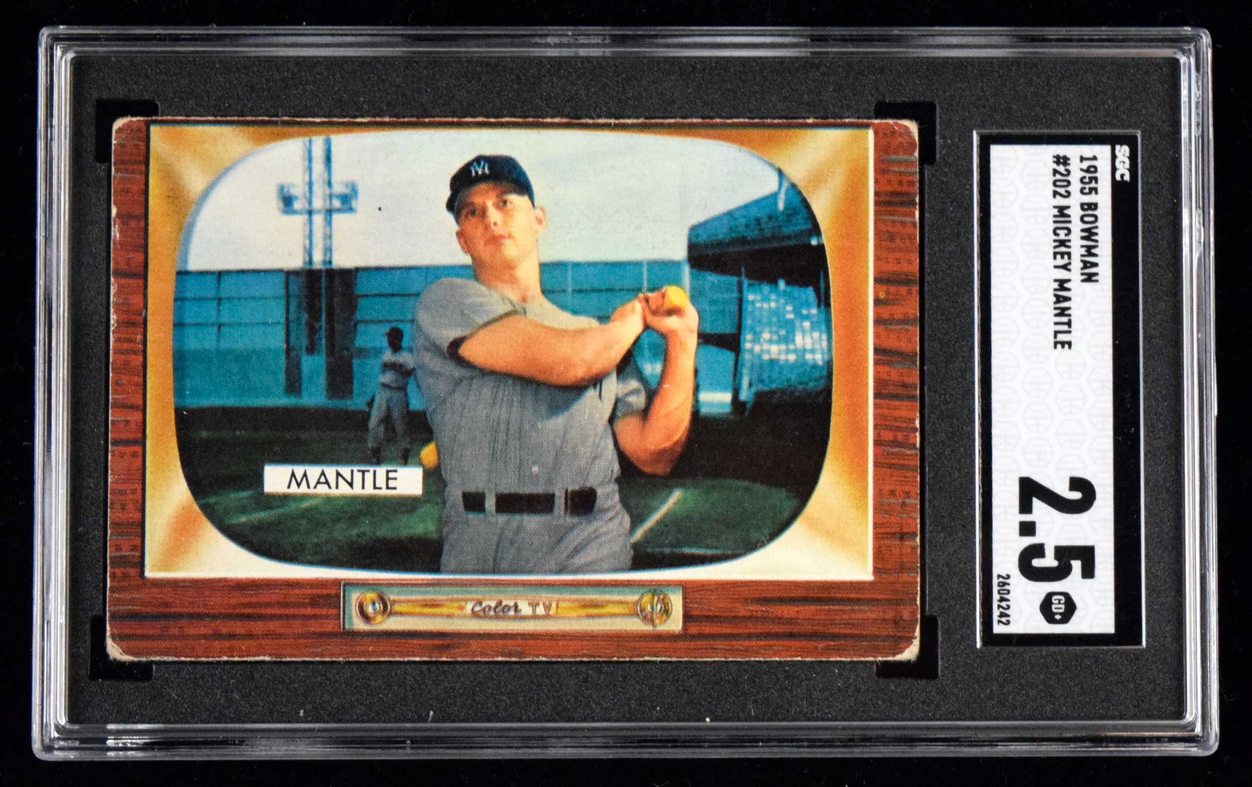 1955 Bowman #202 Mickey Mantle (SGC 2.5 GD+) Mild general wear primarily to corners: SGC 2.5 GD+ ($300-$500)