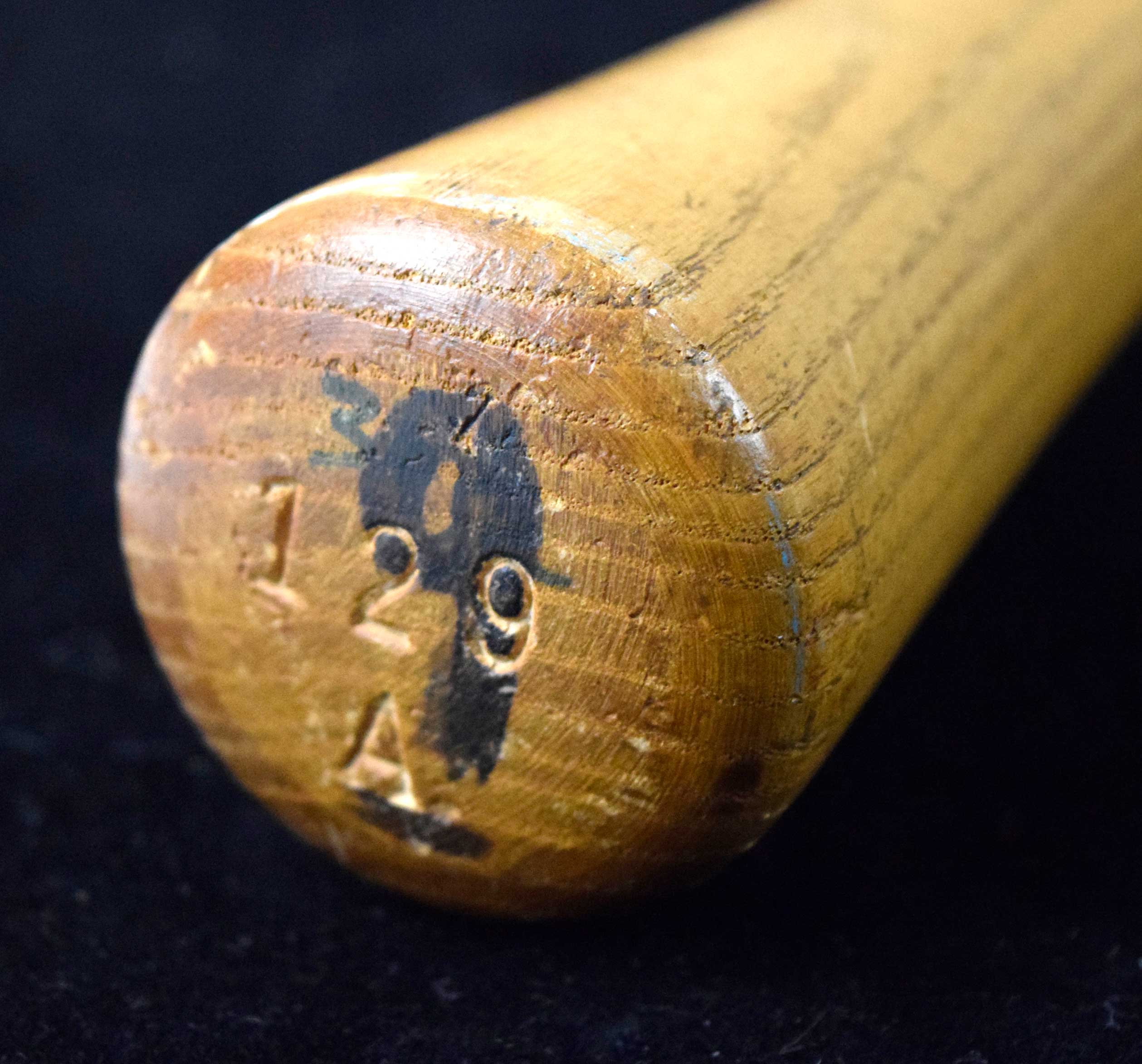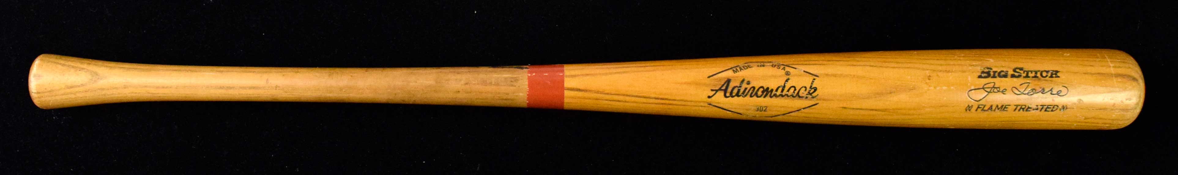 Description:Joe Torre professional model baseball bat c.1971-74 - M.V.P. and batting title era (EX) Adirondack 302 Big Stick bat with Torre facsimile signature in the barrel measures 35" long and weighs 35.5oz. Model number "129A" is factory stamped in the knob which has a vintage "9" player number marker notation. Uncracked with nice use that includes several ball/stitch marks in the barrel: EX ($1,000-$2,000)