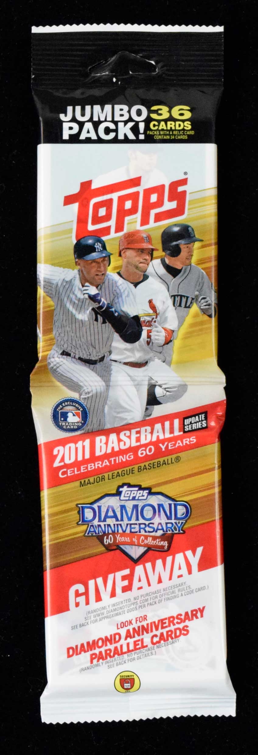 Description:2011 Topps Update unopened retail jumbo pack (EX/MT-NM, see description) Factory sealed pack is in "as issued" condition however there is some very minor residue on the back which is likely from a price sticker that was removed: EX/MT-NM, see description ($500-$1,000)