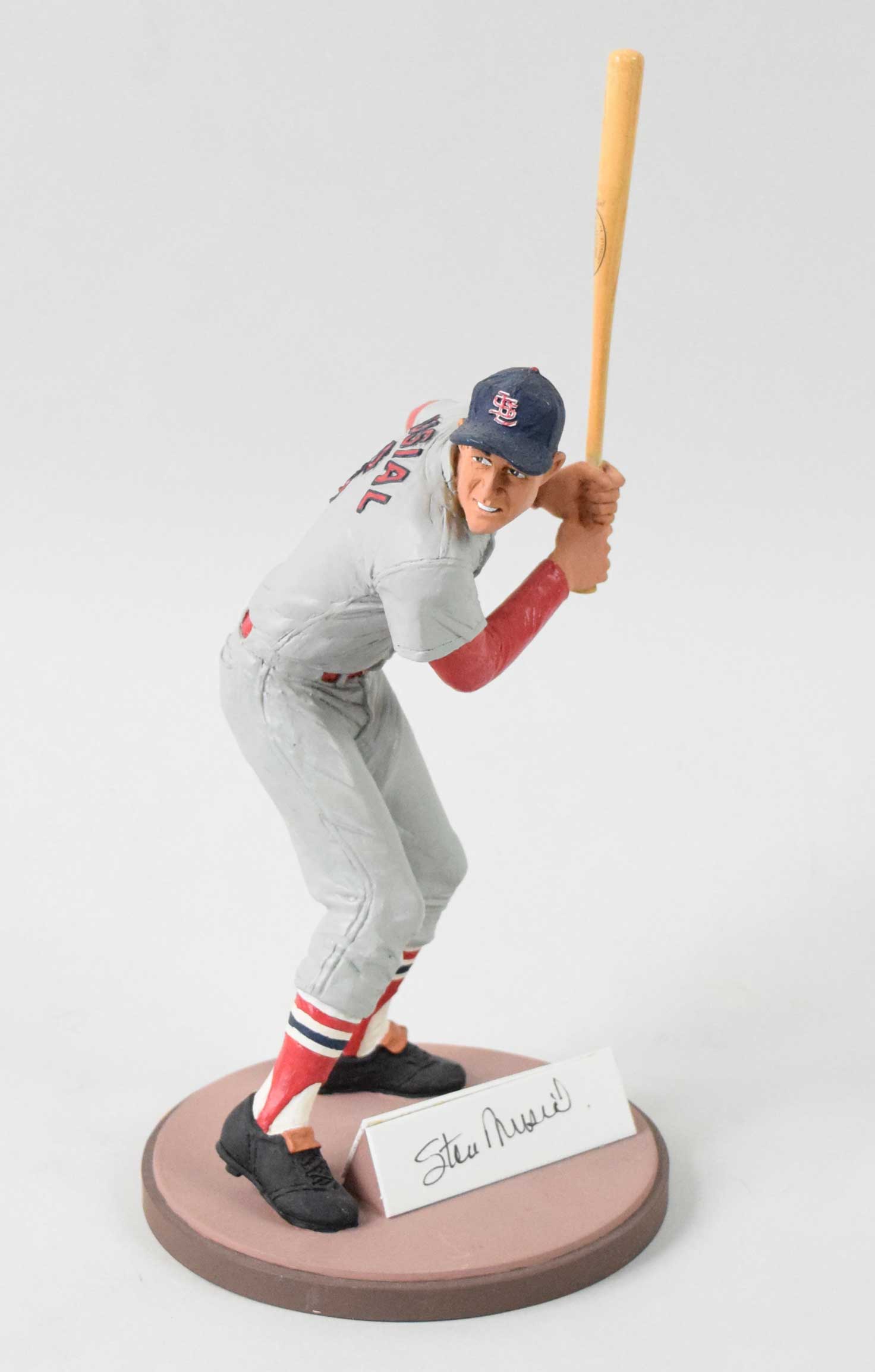 Description:Stan Musial artist proof Gartlan statue signed by both Musial and Gartlan (NM). 1992 statue signed on the front of the nameplate by Stan Musial, and signed on the back of the nameplate by R.H. Gartlan. Signatures rate 8 to 9 out of 10. Authentication sticker on the bottom of the base indicates that one 300 artist proofs were made: NM