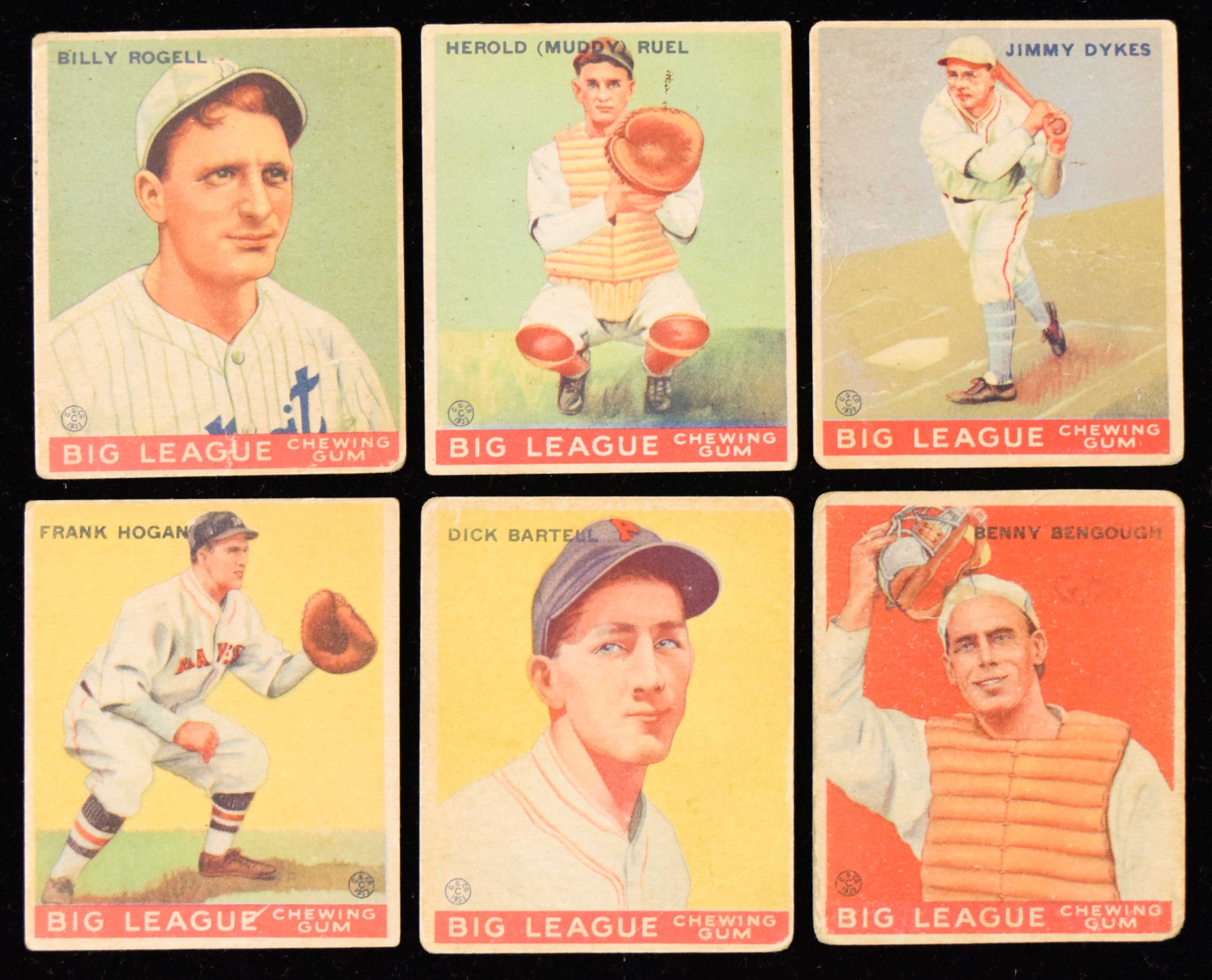 Description:Lot of (16) 1933 Goudey Baseball low numbers (PR-VG). Includes #s 1 Bengough (corner wear and pencil marks), 3, 5, 6, 9, 11, 13, 14, 15, 18, 21, 26, 28, 30, 32, and 40. Most appear to average FR/GD-GD due to pencil marks and/or other forms of wear. Range: PR-VG